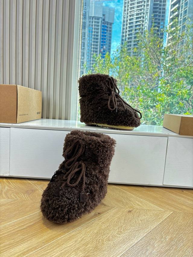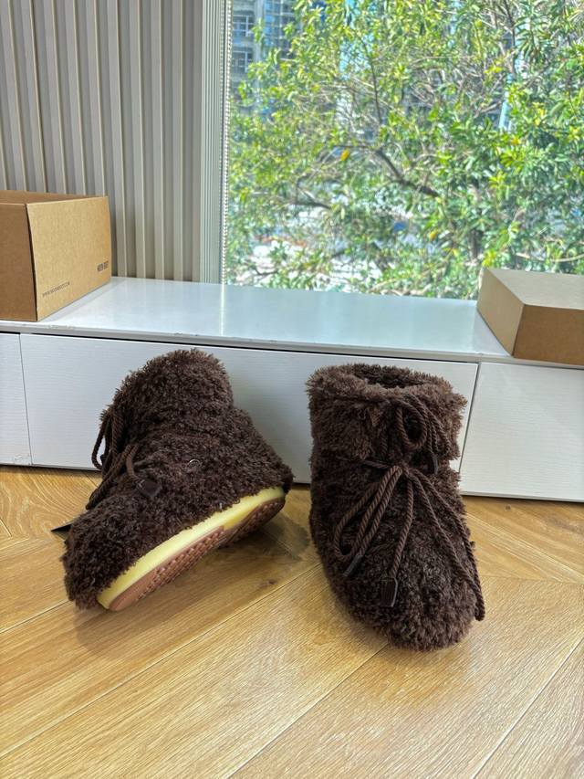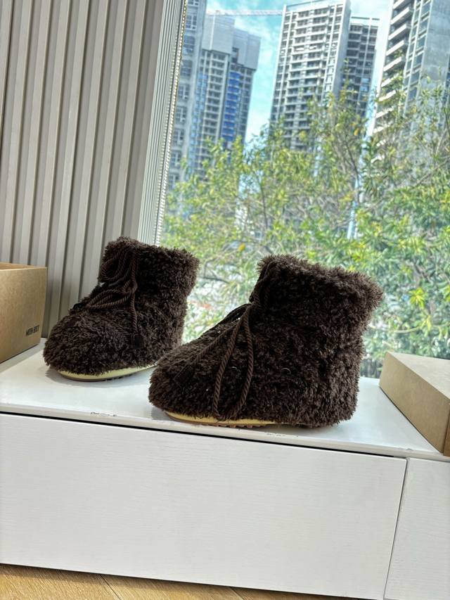 G178所见即所得Moon Boot 秋冬最新款雪地靴 丑萌滑雪鞋超多明星网红种草 秋冬滑雪必备款 现在有一款更另类的雪地靴又杀回来了 内增高5Cm那就是Moon Boot月亮靴在千禧年就已经非常火了 当年paris Hilton、Victoria Beckham 等名人经常穿它,如今Y2K风潮再次流行 万人大秀的丑萌雪地靴重新翻红 不分男女不分左右 看着巨无霸巨显瘦还暖和好穿 DDD 面料: 原版定制仿颗粒羊毛 DDD 内里千羽棉 原版防滑耐磨吸盘 DDD 大底 Size: 35 36 37 38对应S