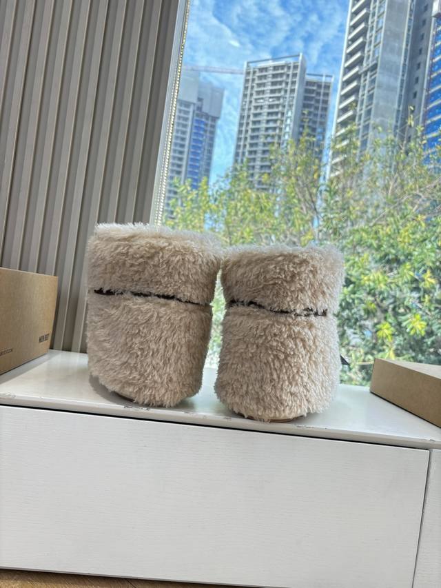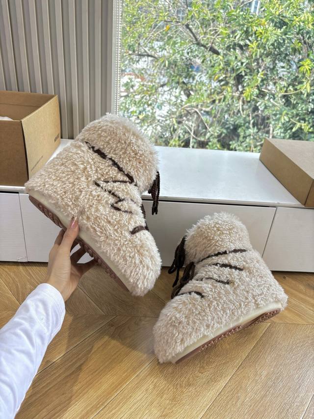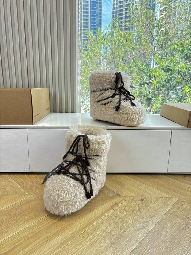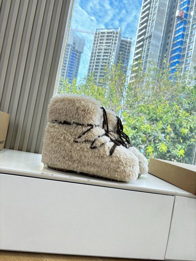 G178所见即所得Moon Boot 秋冬最新款雪地靴 丑萌滑雪鞋超多明星网红种草 秋冬滑雪必备款 现在有一款更另类的雪地靴又杀回来了 内增高5Cm那就是Moon Boot月亮靴在千禧年就已经非常火了 当年paris Hilton、Victoria Beckham 等名人经常穿它,如今Y2K风潮再次流行 万人大秀的丑萌雪地靴重新翻红 不分男女不分左右 看着巨无霸巨显瘦还暖和好穿 DDD 面料: 原版定制仿颗粒羊毛 DDD 内里千羽棉 原版防滑耐磨吸盘 DDD 大底 Size: 35 36 37 38对应S