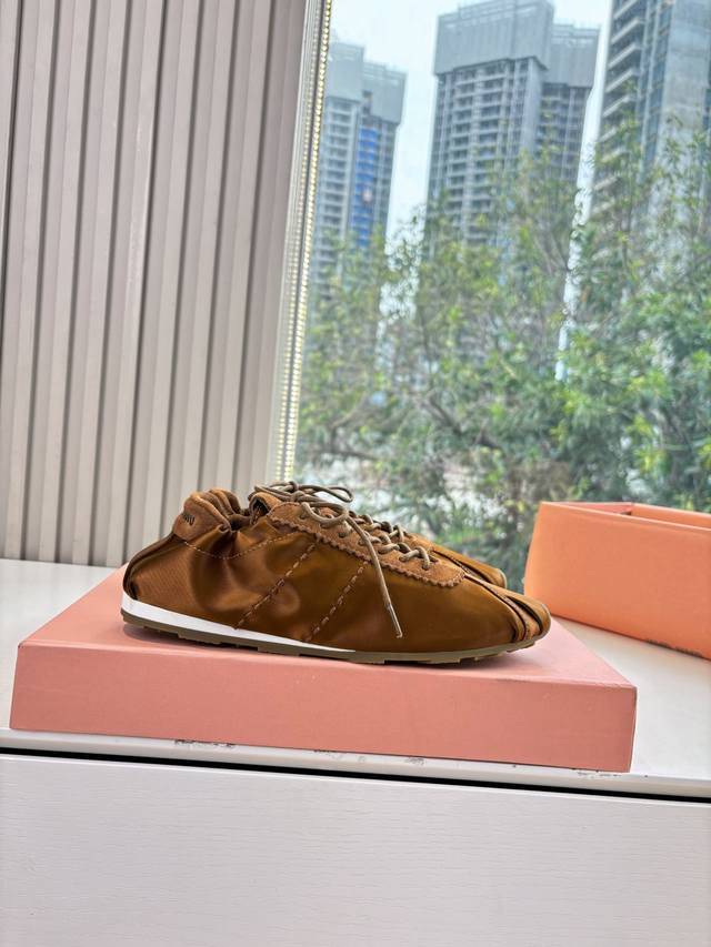 Miumiu缪缪春夏最新走秀款薄底鞋 休闲鞋 超多明星网红种草 国内外博主刷爆的一款 小红书种草系列 复古又时髦上脚美炸了 简约的运动板鞋设计,极具辨识度的鞋舌,打造佛系甜美的休闲风~~上脚气场十足随意搭配,长裙,短裙,短裤,穿出与众不同的风格~~ DDD 鞋面:进口丝绸 DDD 内里:混种羊皮 DDD 原版开模防滑大底 DDD 码数:35-40 DDD