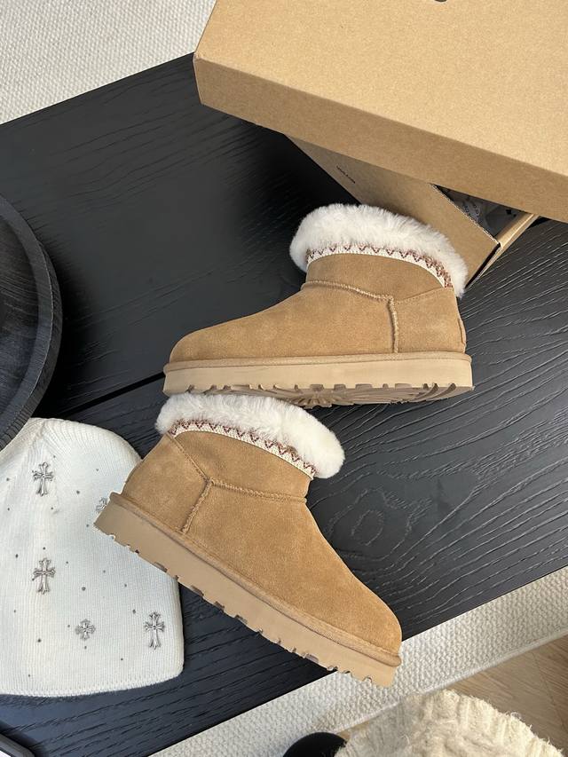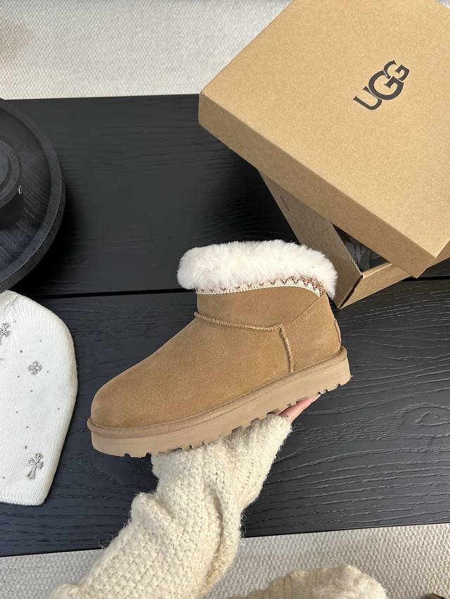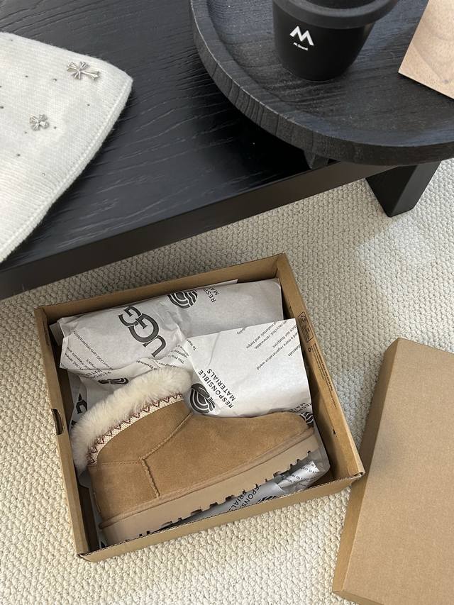 Ugg塔斯林迷你雪地靴,经典短筒设计,反绒皮鞋面+羊毛内里,保暖又舒适!鞋口毛绒翻边,复古感满满,秋冬穿搭超百搭,无论牛仔裤还是裙装都能轻松Hold住。 DDD 颜色:沙色、栗色、尺码:35-40! DDD