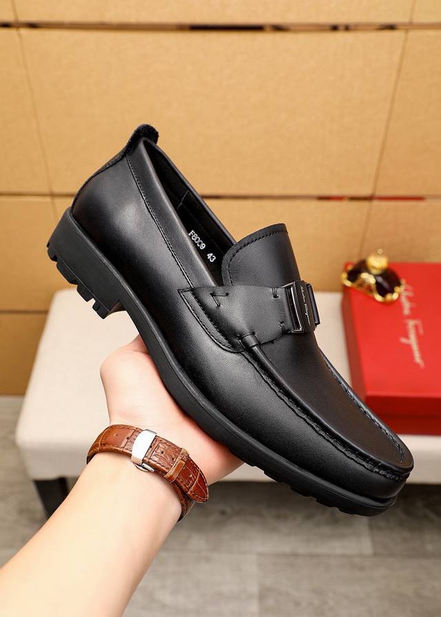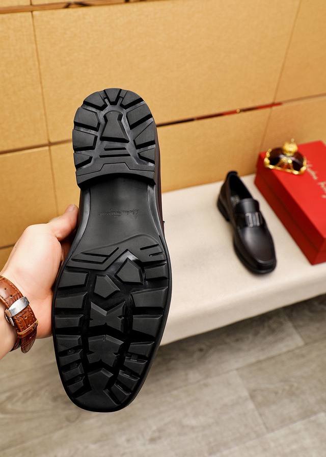 商品商标:Ferragamo 菲拉格慕 休闲皮鞋 Ddd 正码码数: 38-44 45.46订制 Ddd 商品材料:精选 进口小牛皮鞋面+经典五金扣,进口水染牛皮内里。强烈立体视觉效果,橡胶大底 Ddd 颜 色:1色可选 DDD