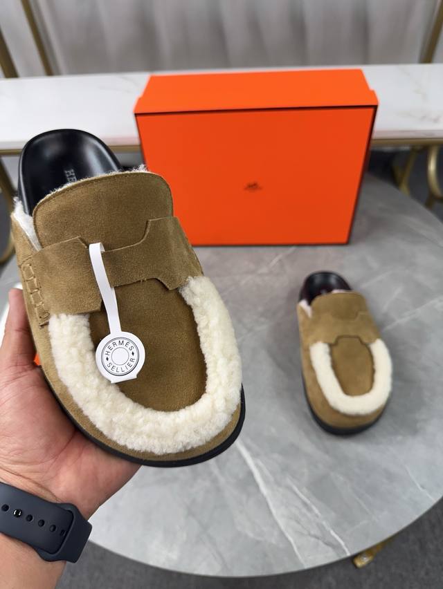 实价: 爱马仕Hermes勃肯穆勒鞋 Ddd 春夏真的很需要百搭拖鞋了,随意且高级的感觉,舒适度也很棒,大头设计更多了一份俏皮感,一脚蹬设计方便又实穿。 Ddd 鞋面:原版高丝光牛绒 Ddd 内里:毛里 Ddd 大底:原版Tpu水台+像胶底片组合 Ddd 码数:女码35-40 40-41 -42不退换 男码:38-45 45不退换 DDD