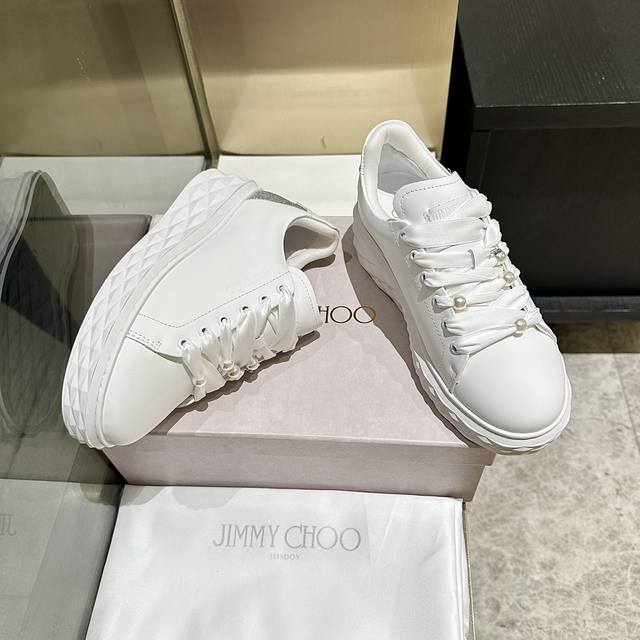新款吉米周 Jimmy Choo ,独家发售,原版大底休闲小白鞋,采用最新工艺设计,立体感强多种工艺融合一起,颠覆时尚,超级有型!搭配超美。原版一比一珍珠设计风