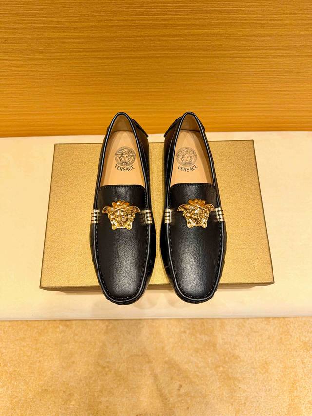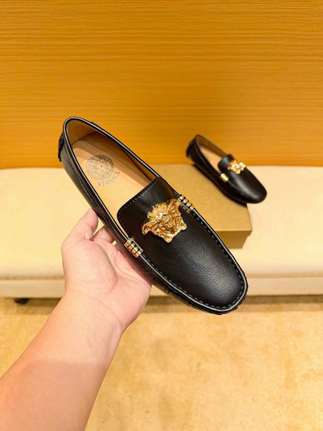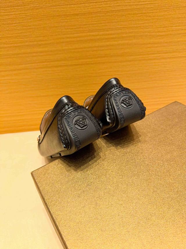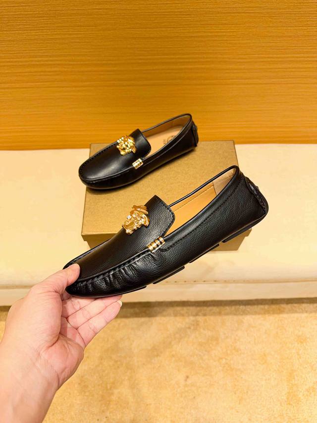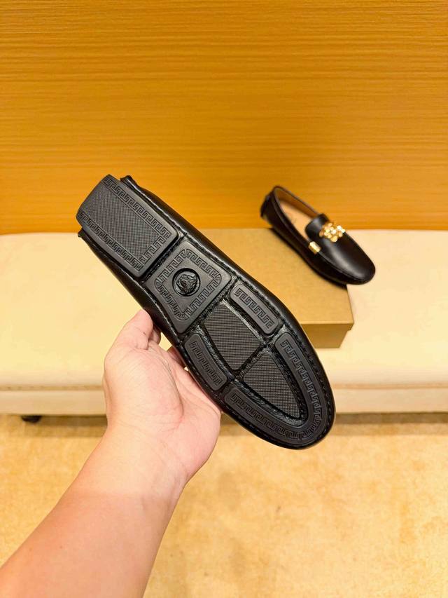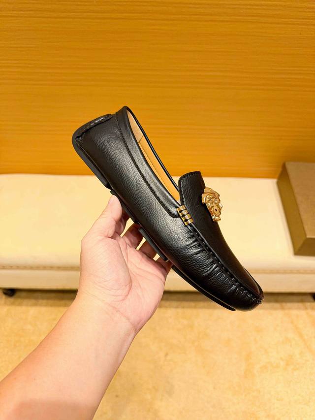 / 牛皮里真材实料, Verace 范思哲男士四季休闲豆豆鞋,最新元素潮爆全球,官网火爆热卖,原版版本,专柜爆款,鞋面意大利进口原版牛皮性感美灶莎头像金属扣,原版防
