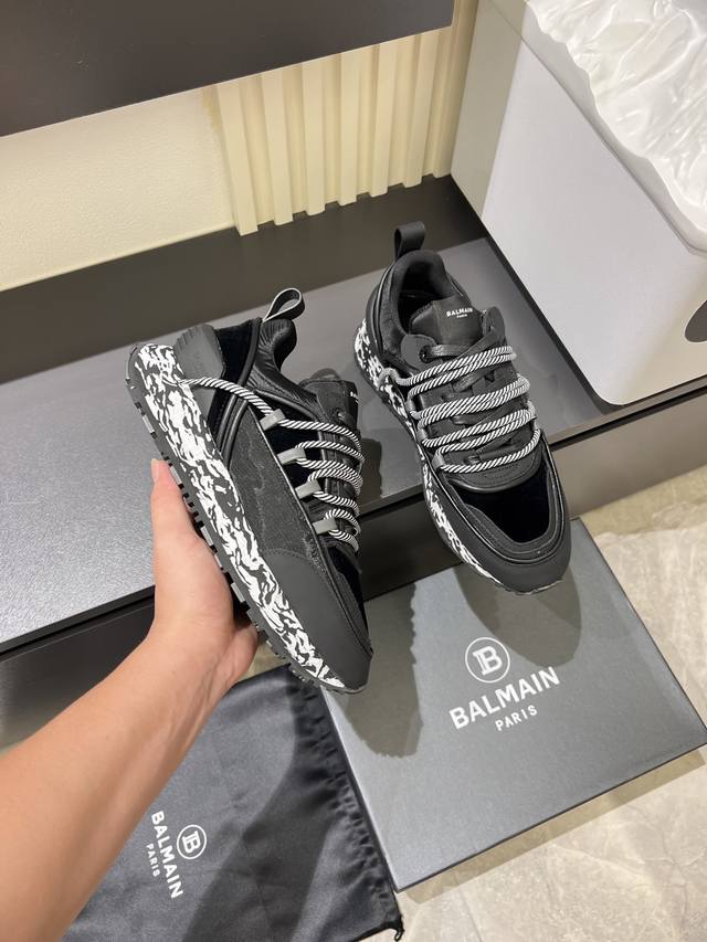 Balmain 巴尔曼 男士休闲运动鞋,Balmain 以其大胆而富有远见的廓形而著称,旨在为穿着者赋予力量。这款鞋履采用小牛皮和牛反绒皮革鞋面拼接,真皮内里垫脚,包裹性舒适性能强,上脚舒适透气,时尚感满满,鞋舌Balmain标志细节,鞋头鞋后跟立体字母Logo细节,Tpu鞋底纯色Balmain标志。Size:38-44 45定做 DDD
