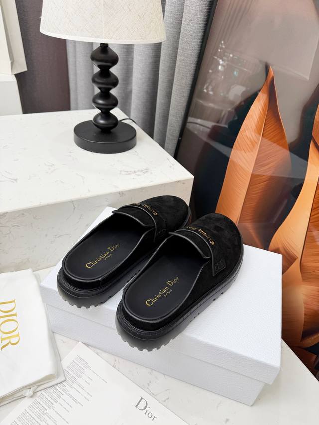 Dior 迪奥2025Ss复古英伦风懒人半拖,原版开发 萱型百搭瘦脚Yyds.造型立体饱满,帅气十足 上脚舒适 一款非常复古风、气场十足单品、设计风格非常新颖