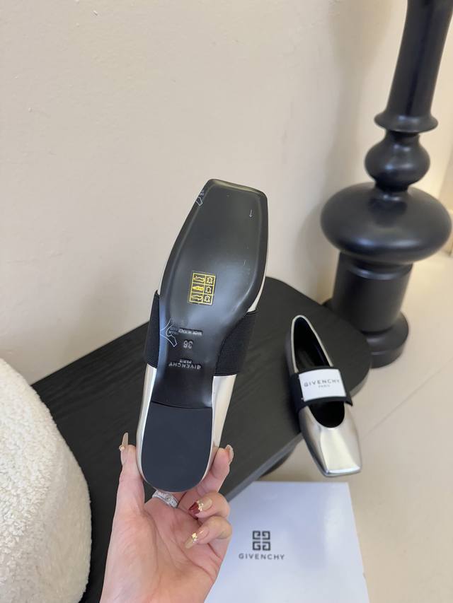 Givenchy 纪梵希F030 26Ss早春走秀新款 章若楠同款Sliced Square 松紧带玛丽珍单鞋芭蕾舞鞋 Ddd 裁切方头,轻松优雅气质。兼顾风格与极度舒适,弹性饰带缀”Givenchyparis“标识,个性十足。 Ddd 搭配裙装西裤休闲裤,完美呈现不同风格下芭蕾舞鞋的优雅气质,拍照超出片! Ddd 鞋面:进口牛漆皮 镜面牛皮 Ddd 内里:进口羊皮 Ddd 鞋底:意大利进口真皮大底 Ddd Size:35-41 40.41定做不退换 DDD