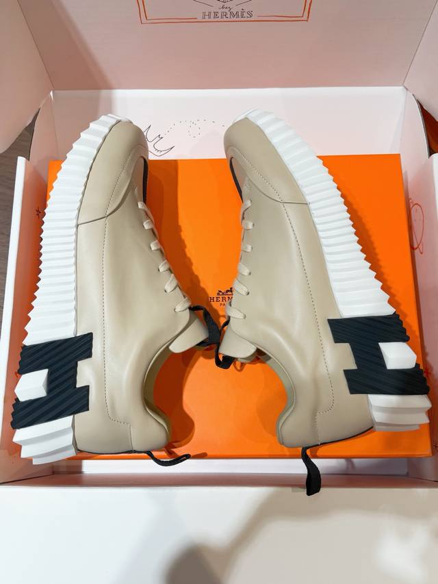Hermes Bouning男士运动鞋-牛皮中底 原版购入,1:1复刻,想要顶级的这就是你的专属 麂皮山羊皮和小牛皮运动鞋。 轻盈鞋底装饰撞色图案,打造百搭时尚