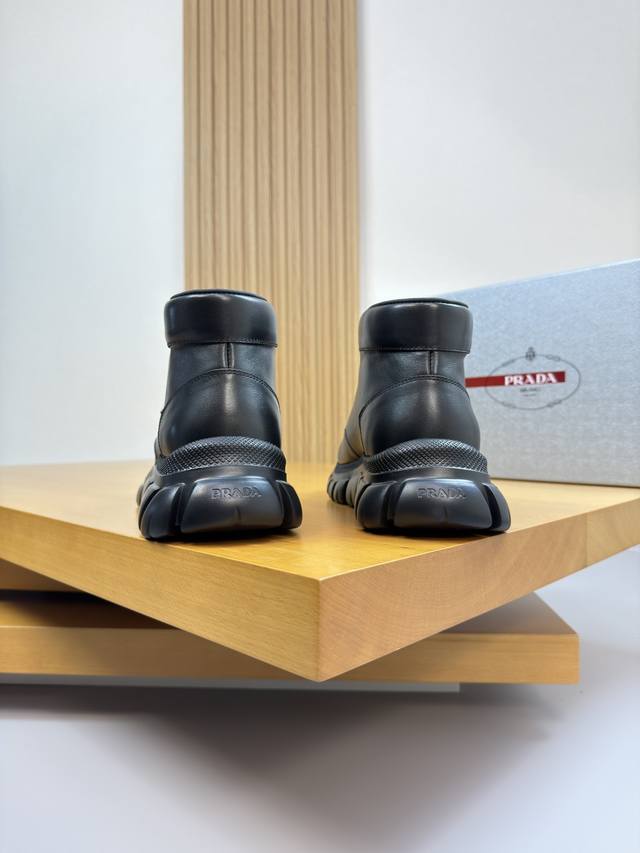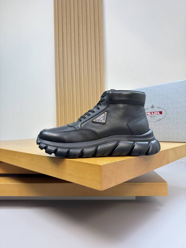 prada 普拉达 -高端品质 原单 高帮休闲运动鞋 -鞋面:纳帕小牛皮、鞋身.车缝品牌Logo金属扣件、鞋舌.丝印品牌Logo -内里:水染牛皮 -大底:超轻