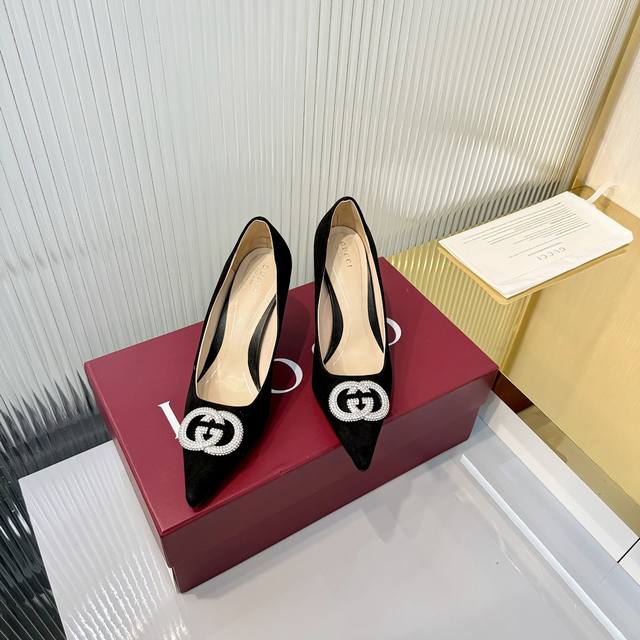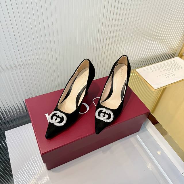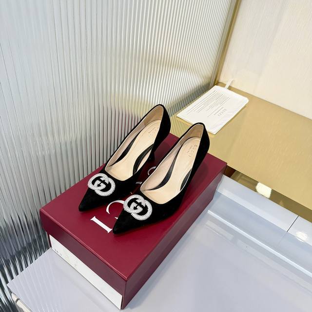 出厂价Pp DDD 2025早秋新款 Gucci高端精品单鞋V古驰 漆皮G G水晶 网钻奢华水晶高跟鞋顶级代购品质!原版1:1复刻,毎个细节皆经过精心打磨细腻制