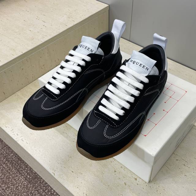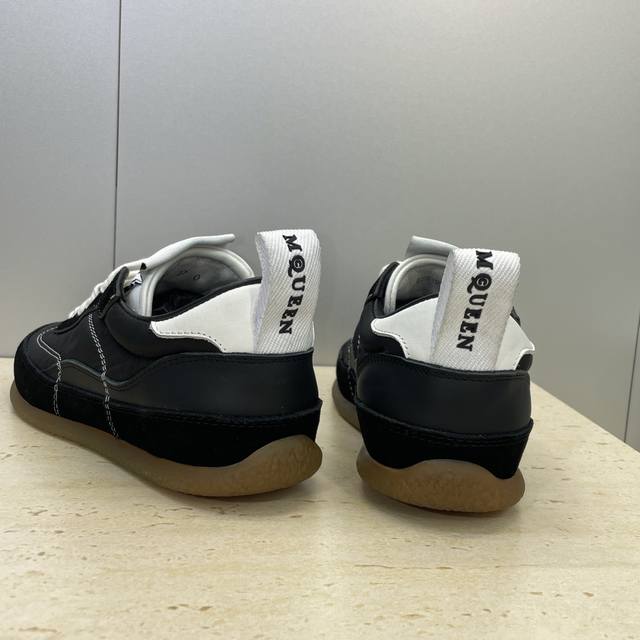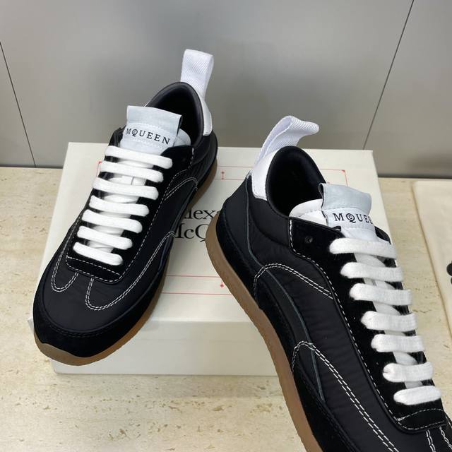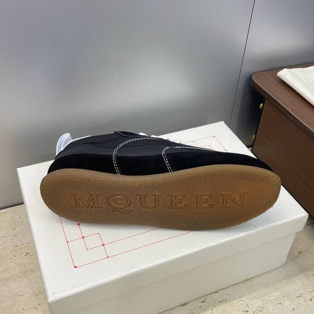 FFF 工厂P价P女码 男码 DDD Alexander Mcqueen 2026早春新款系列Ec1情侣款复古休闲运动小白鞋 亚历山大 麦昆字母Logo平底圆头系带拼色徳训阿甘跑鞋 DDD 材质:鞋面进口小牛皮 进口羊猄皮 环保透气防水科技面料+水染羊皮内里+原版开模防滑生胶大底 DDD Size: 女码35-40 40定制不退换 DDD 男款39-45 DDD