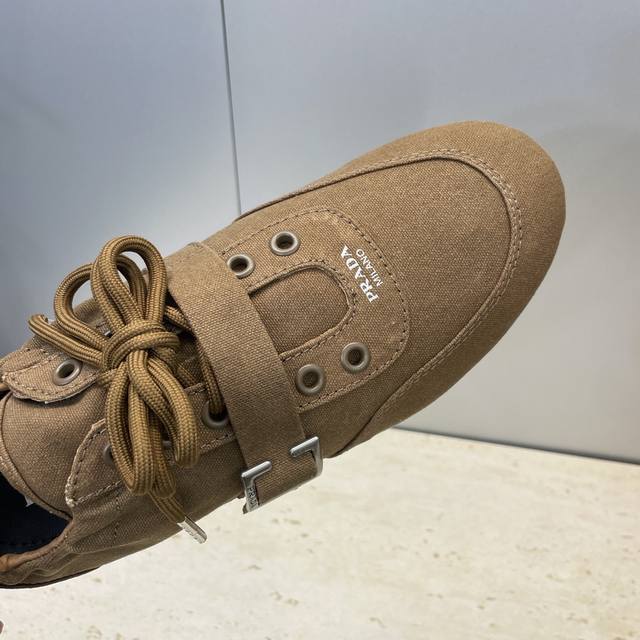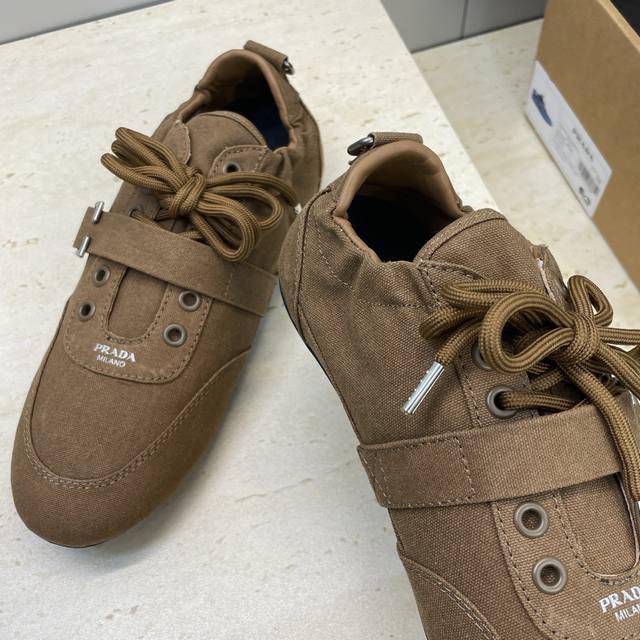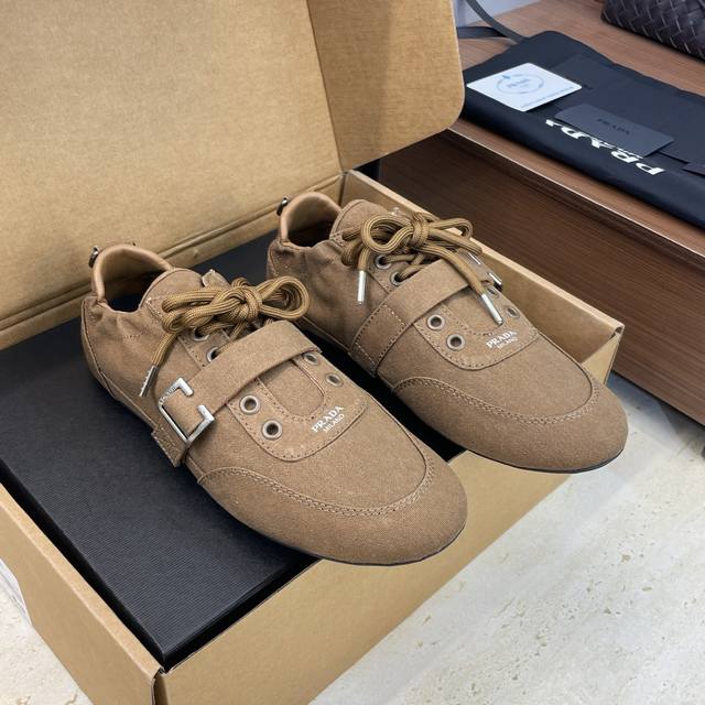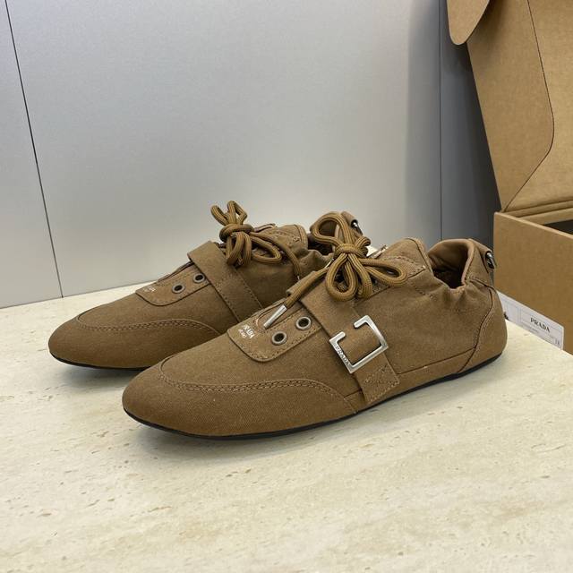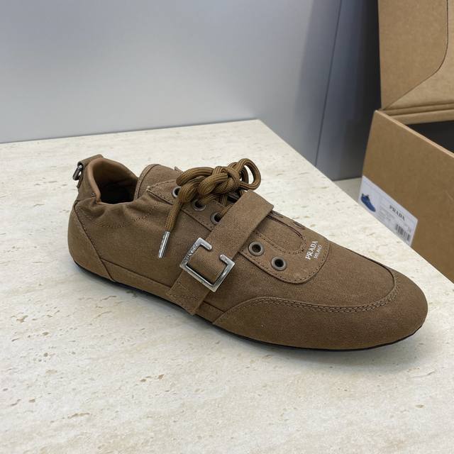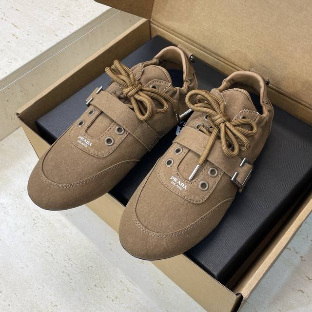 FFF 工厂P价P 配全套飞机盒 DDD Prada 2026早春新款休闲系带运动阿甘女跑鞋 普拉达字母Logo五金皮带扣平底圆头拼色滑板徳训鞋 DDD 材质:鞋面进口真丝面料 环保透气水洗牛仔布+水染羊皮内里+原版开模Tpu大底底 DDD Size:35-41 40.41定制不退换 DDD