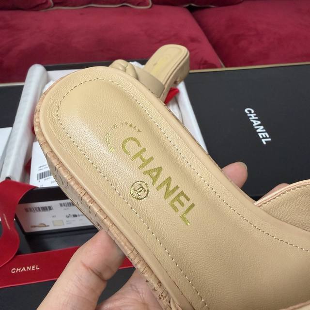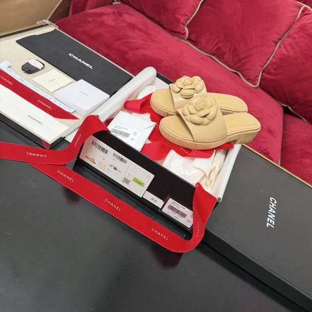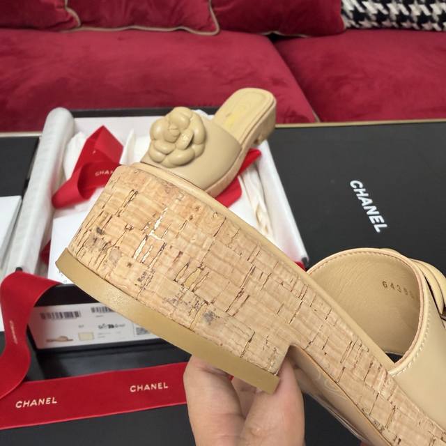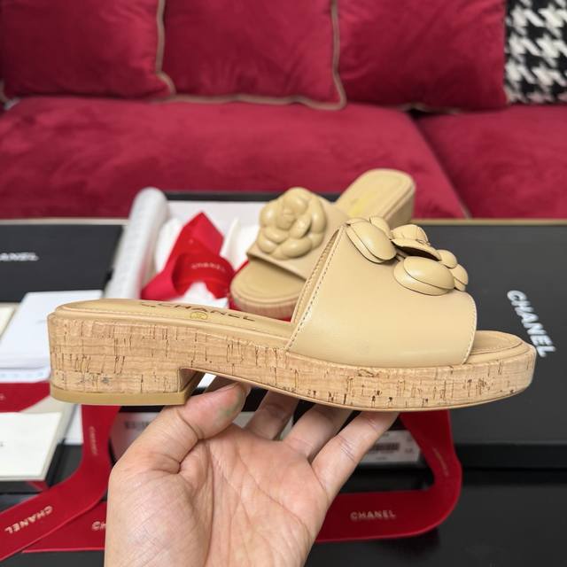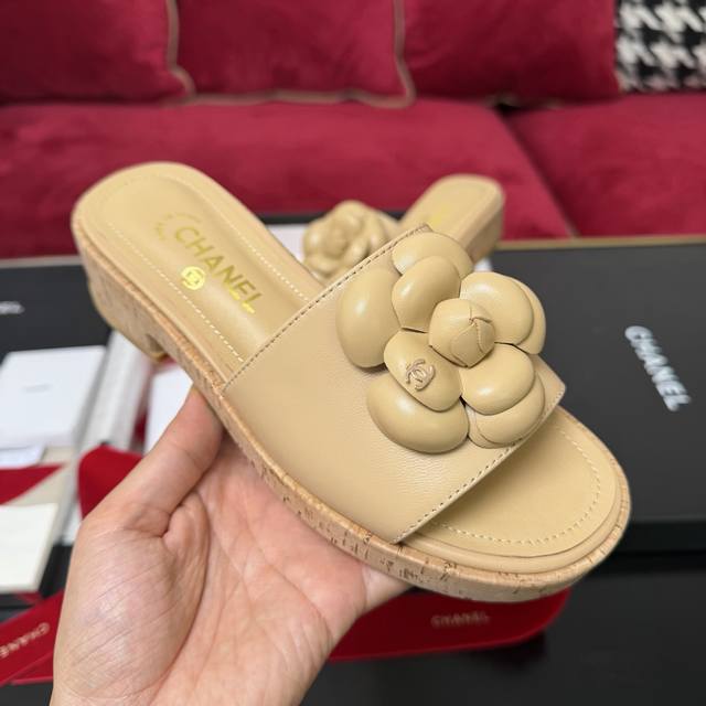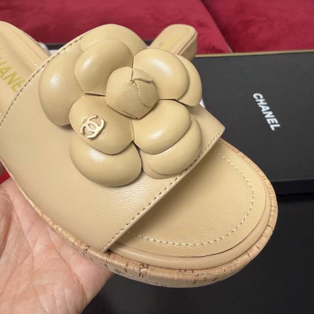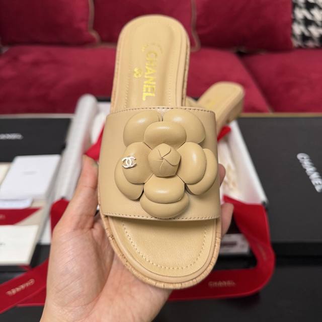 杏色上新啦Chanel香奈儿 山茶花装饰 木纹拖鞋 简约百搭款 三色实拍 35-40 DDD