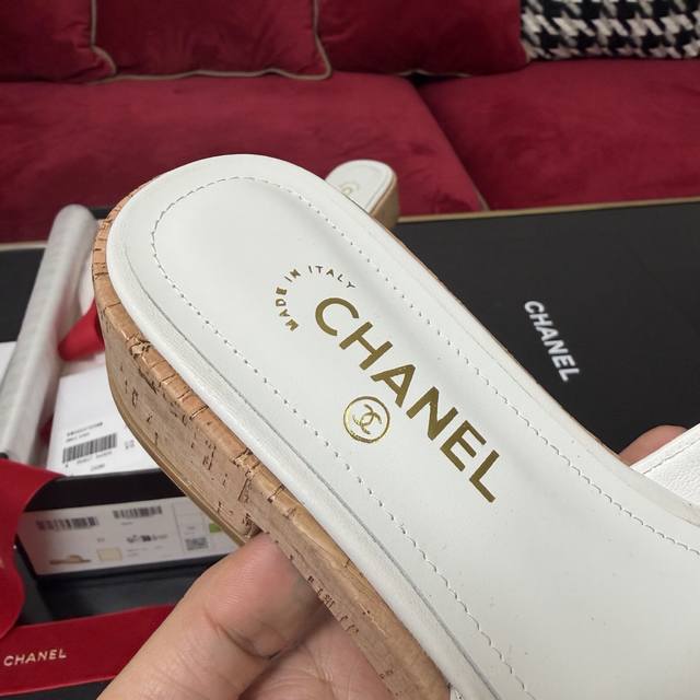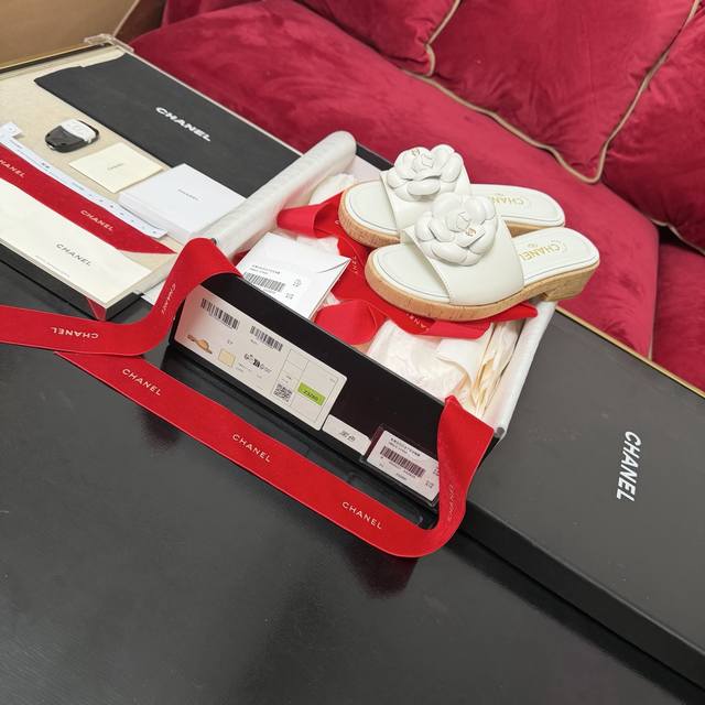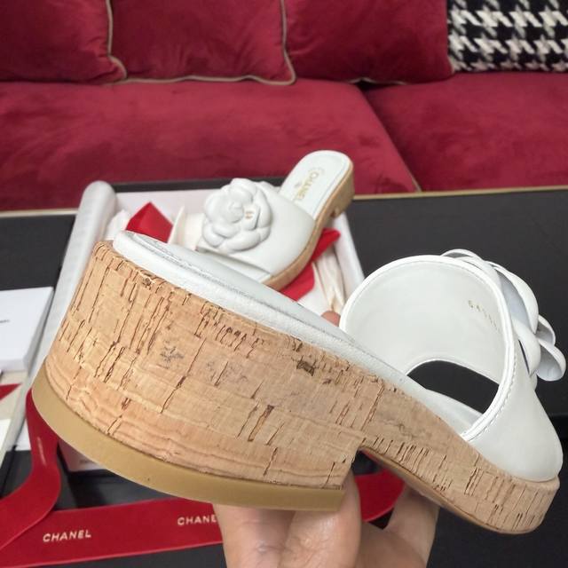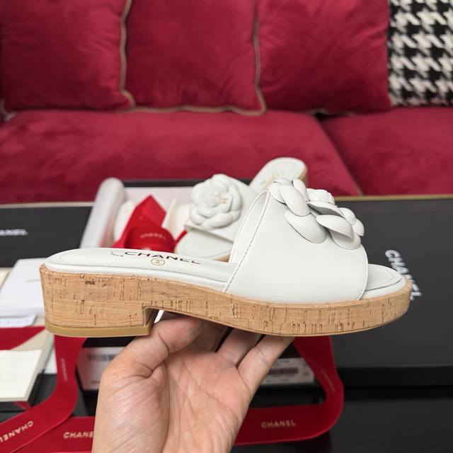 白色上新啦Chanel香奈儿 山茶花装饰 木纹拖鞋 简约百搭款 三色实拍 35-40 DDD