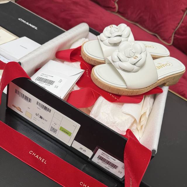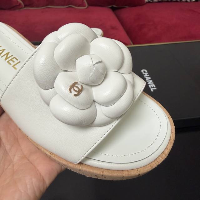 FFF 白色上新啦Chanel香奈儿 山茶花装饰 木纹拖鞋 简约百搭款 三色实拍 35-40 DDD