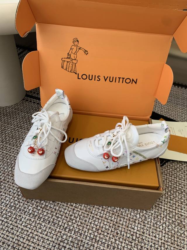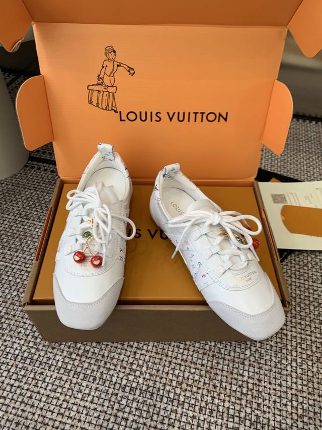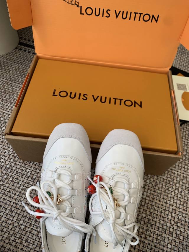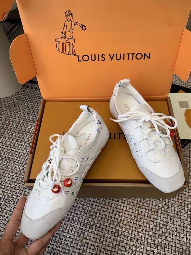 FFF 顶级版本 女款 男款 DDD Louis Vuitton路易威登 Sneakerina系列 芭蕾运动鞋 德训鞋 情侣款 樱桃100 DDD Sneakerina 芭蕾风运动鞋以丝滑绒面牛皮革塑造流畅线条 兼具芭蕾舞鞋的轻盈构型和运动鞋的舒适质感 侧面 Lv 标识Monogram 帆布后袢带丰富细节 Sacchetto 工艺和 Tpu 外底升级轻柔穿着体验 随意搭配 DDD 面料 原版定制进口头层牛皮 内里 原版定制透气网里原版开模大底 注塑Tpu材质 DDD 码数: 35-45 女40 男45 定