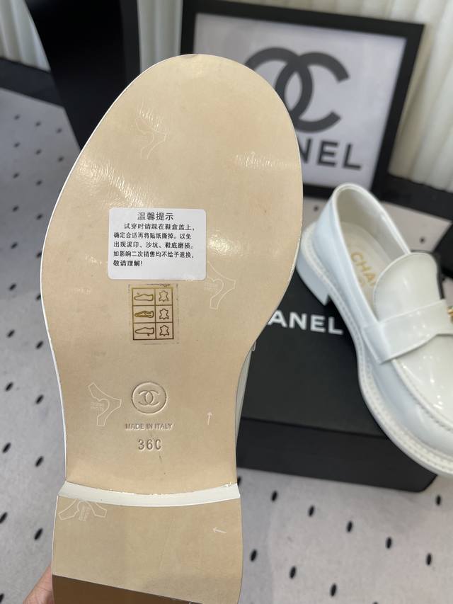 Chanel新款乐福鞋 乐福鞋爱好者绝不能错过 这款气质上更中性帅气几分 线条感很足 鞋面采用进口小牛皮 内里垫脚采用进口油牛皮 意大利进口牛皮大底 Size: