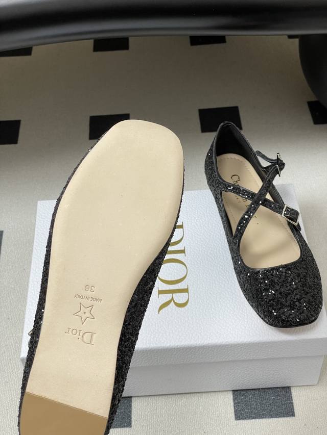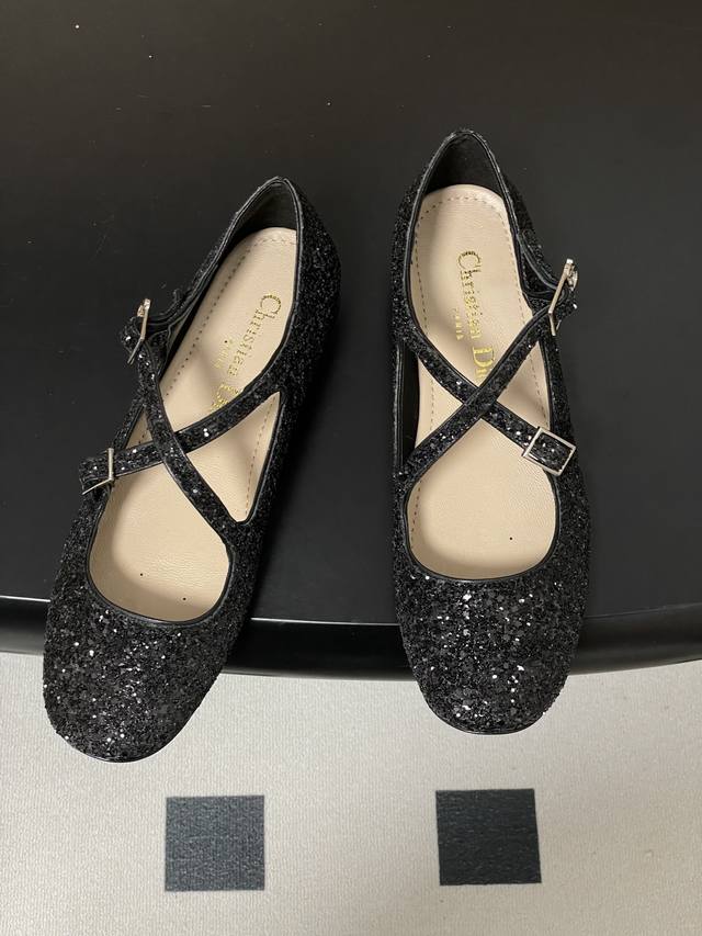 FFF DDD 26Ss春夏新款Dior 迪奥Verydior芭蕾鞋交叉带搭扣玛丽珍鞋亮片芭蕾舞鞋透明网纱电绣网面平底单鞋 DDD 这款Verydior芭蕾鞋于迪奥二零二六早春成衣系列发布秀精彩亮相,优雅迷人。鞋面通体包覆以亮片装饰。圆形鞋头设计,正面饰以可调节交叉系带,别具一格,点缀以灵感源自Dior档案的相扣的银色饰面金属Cd标志。搭配加垫牛皮革内底,精致舒适,可与各式高雅造型搭配。 DDD 鞋面:定制网纱 牛漆皮 格力特亮片 DDD 内里垫脚:羊皮 DDD 鞋底:意大利真皮大底 DDD 码数:35-