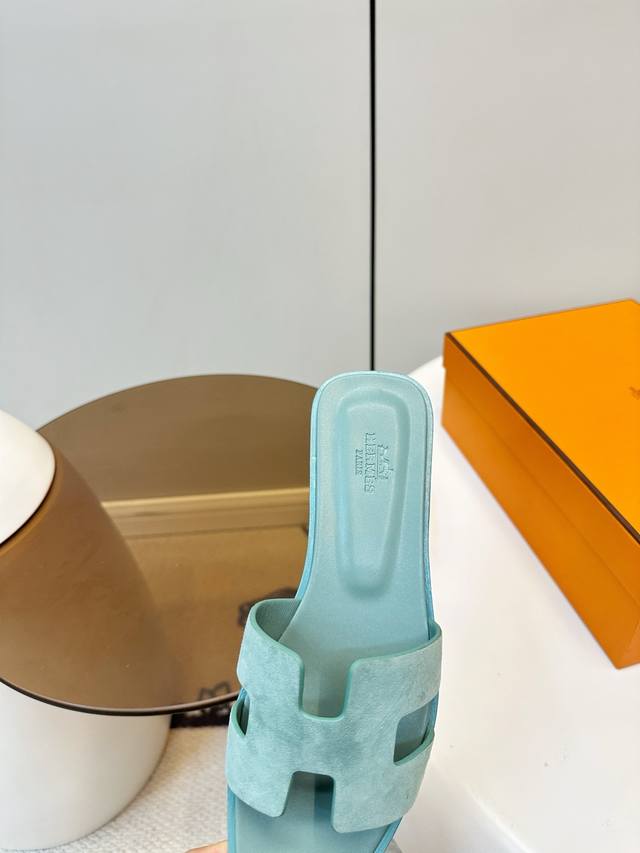 FFF Hermes|爱马仕Oran H型平底 中跟 拖鞋 DDD 爱马仕Oran H型拖鞋,标志性“H”字鞋面超有辨识度!鹿皮材质柔软舒适又百搭,夏天穿超合适~平底设计轻便好走,日常出街或度假都能轻松驾驭。意大利制造,细节满分,后跟“腰铁”结构让鞋子更耐穿不易变形。无论搭配裙装还是休闲裤,都能轻松提升造型感,是夏日衣橱必备单品! DDD 鞋面:鹿皮 DDD 内里垫脚羊皮 DDD 跟高1Cm 4Cm DDD 意大利真皮底! DDD 码数35-40 40.41.42订做 DDD