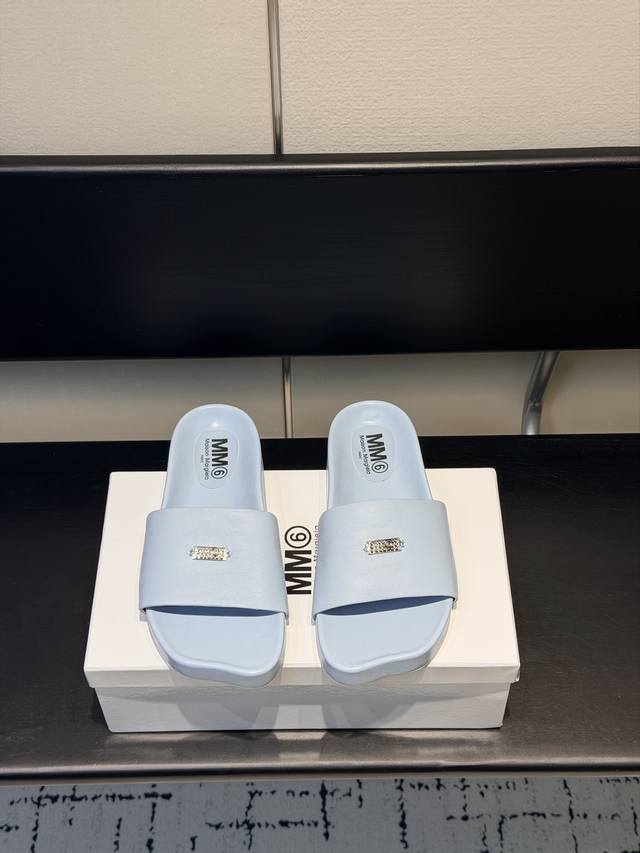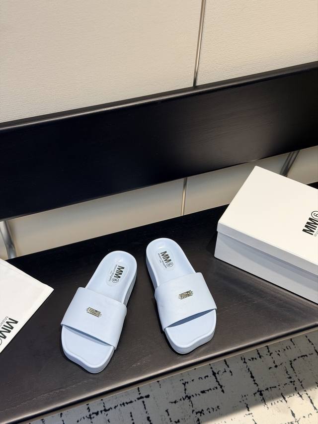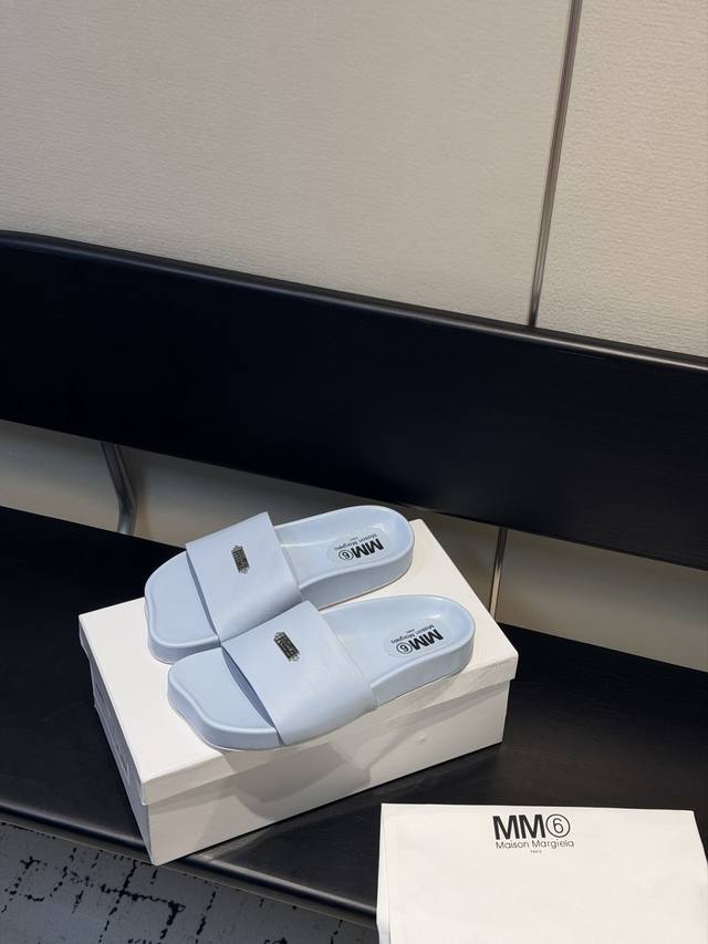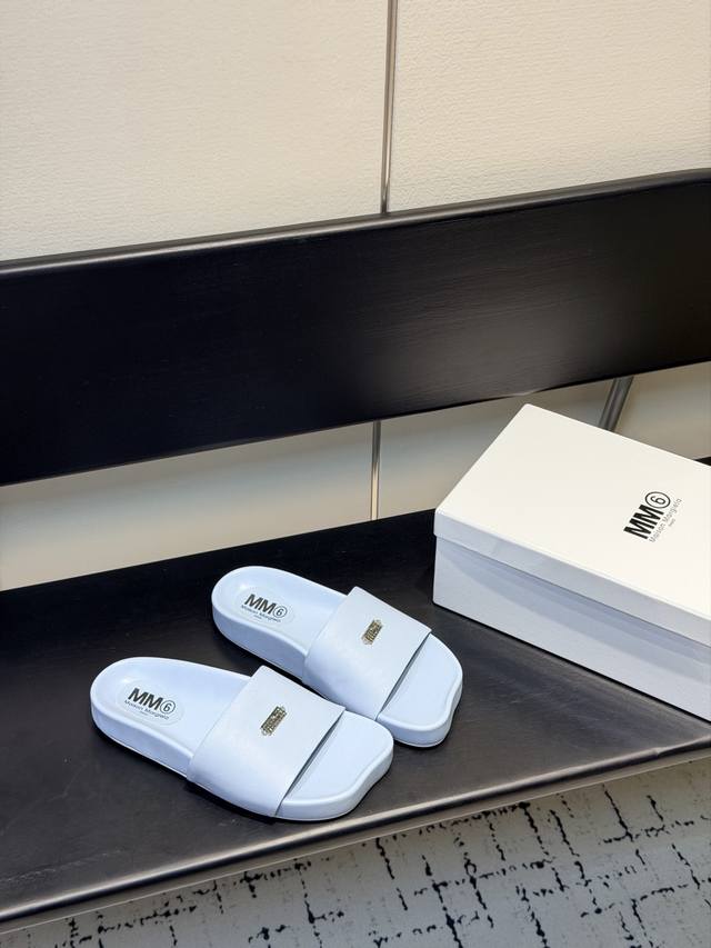 FFF Mm6新款凉鞋 DDD Mm6经典造型苹果头又出新款 DDD 3公分的脚床高度无论从您的海拔还是舒适度都是刚刚好。这款脚床采用了目前最新的黑科技踩上去Q弹又符合人体工学包裹性杠杠的、外观设计简约而不简单、高端大气 DDD 码数:35-40、配原版包装外加飞机盒 DDD
