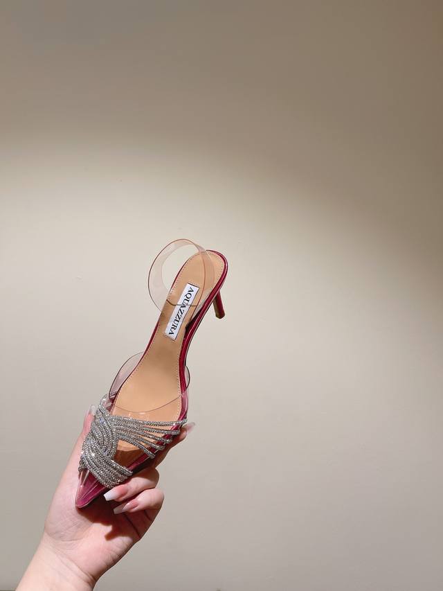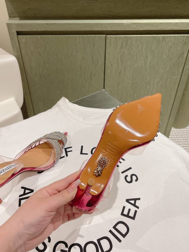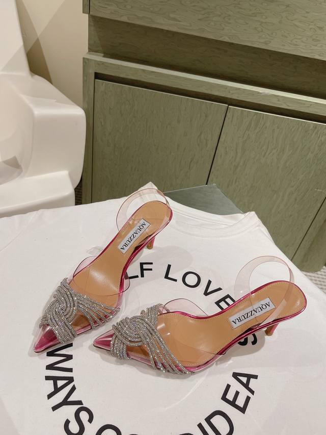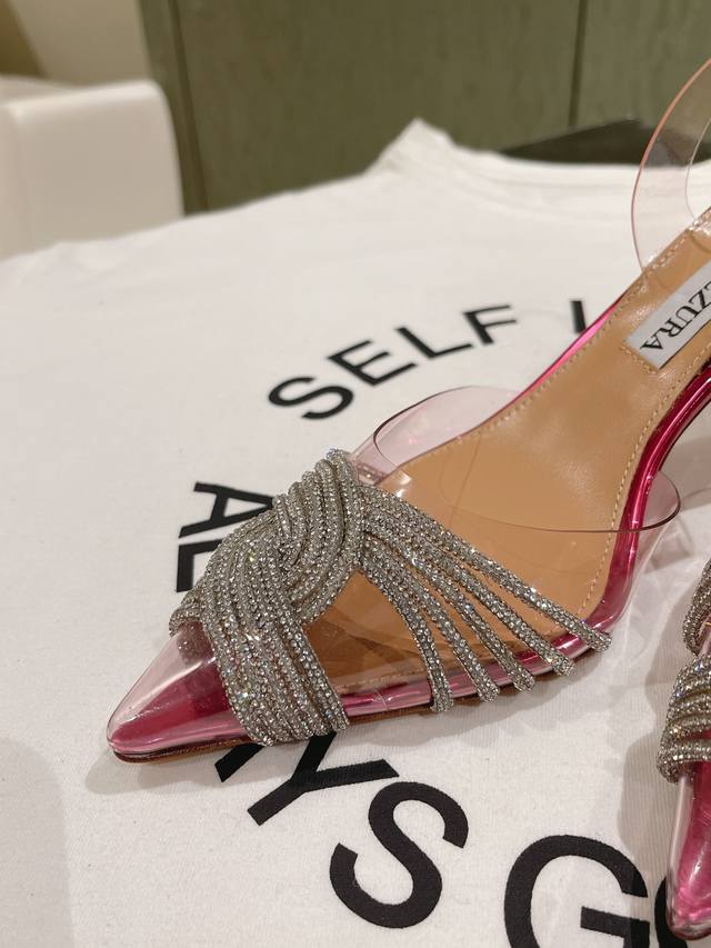 224 Aquazzur* 菠萝早春专柜新品仙女时装鞋系列,大量上新同步官网全系列均可定制龙年主打一个火爆,全网各大网红纷纷开秀,绝美的穿搭系列! ★★★★★ 鞋面 Pvc烫钻手工链条真丝 内里 原版定制柔软羊皮 意大利真皮大底 跟高 6.5Cm 10Cm 码数 34-42 34 40 41 42 定制不退换 专柜同步礼盒包装!