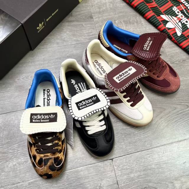 伦敦品牌Wales Bonner和Adidas Samba打造了最火的液态银配色后,现在第二波合作来了,上一款发售绝对受到了很强的追捧,而且市价不低。本次合作共发布四款全新Samba鞋款,整体造型延续了之前超长翻折鞋舌的设计,每双鞋的后跟和鞋舌处都加入了钩针元素和波浪形三道杠设计,辨识度极高。马毛材质呈现辅以蓝色内衬,鞋舌、后跟和三道杠处采用白色点缀,搭配生胶外底,视觉效果绝佳。白色款同样采用了马毛材质,鞋