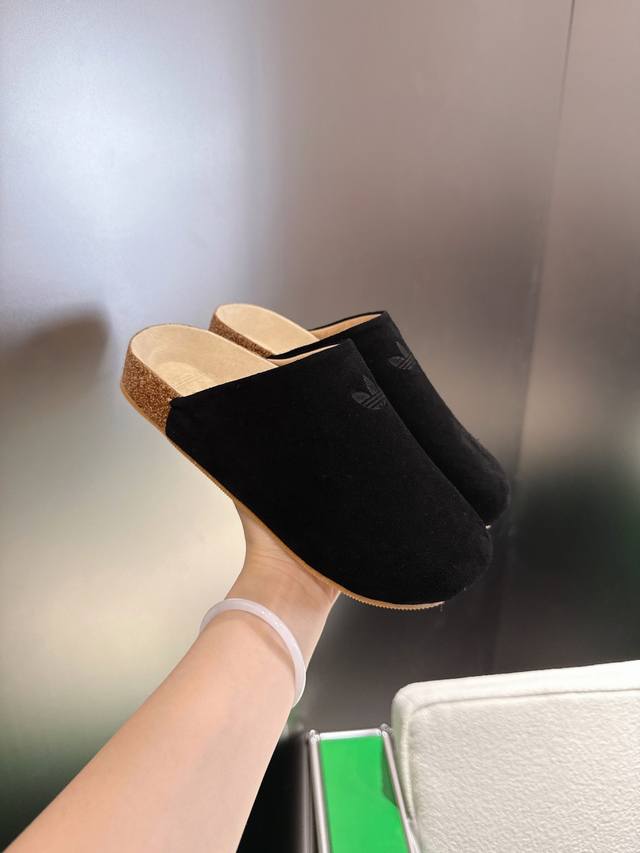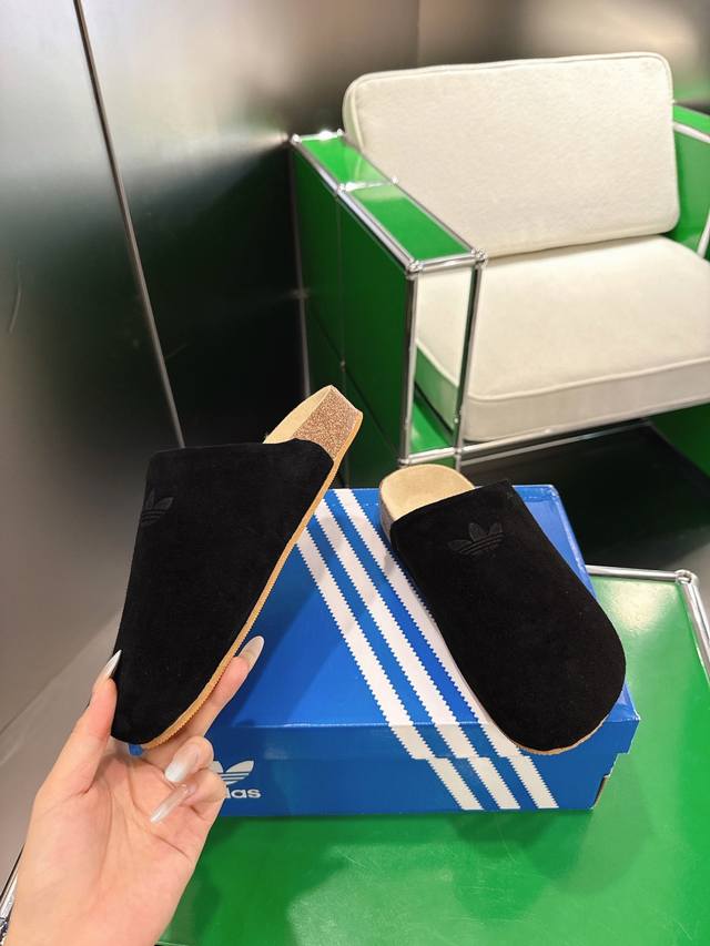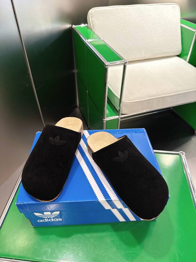 K001 Adidas 阿迪达斯舒适休闲拖鞋穆勒鞋 这款Adimule拖鞋,升格演绎Adilette经典设计,旨在带来别样舒适感。采用软木鞋底、绒面革鞋床和绒面