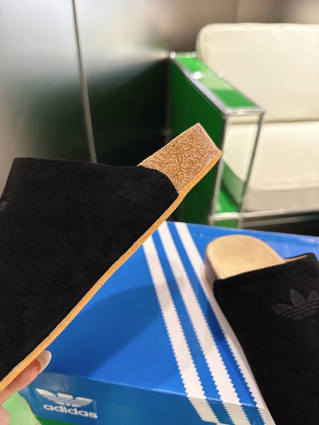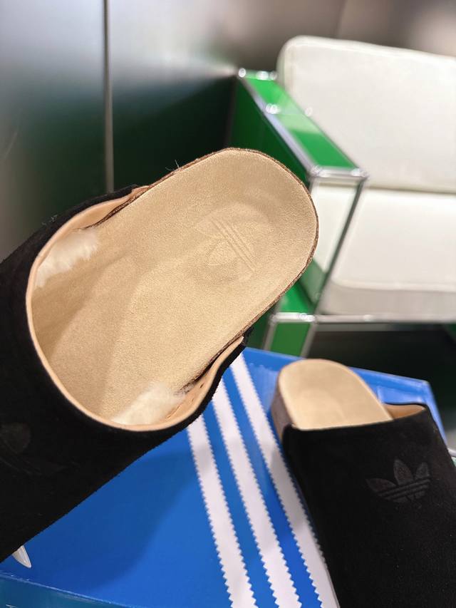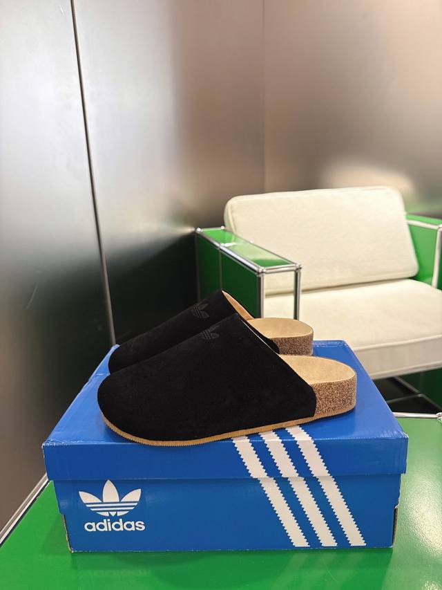 / K001 Adidas 阿迪达斯舒适休闲拖鞋穆勒鞋 这款Adimule拖鞋,升格演绎Adilette经典设计,旨在带来别样舒适感。采用软木鞋底、绒面革鞋床和绒面