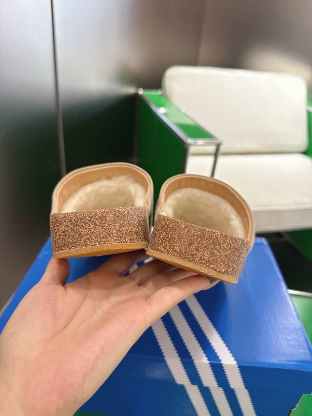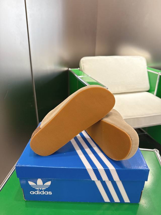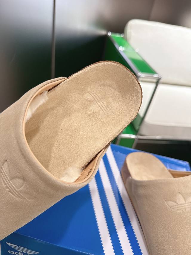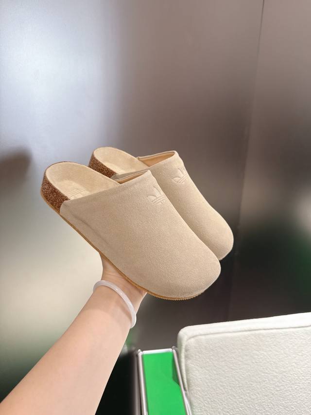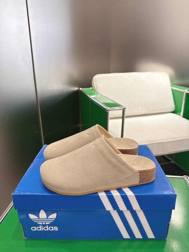 / K001 Adidas 阿迪达斯舒适休闲拖鞋穆勒鞋 这款Adimule拖鞋,升格演绎Adilette经典设计,旨在带来别样舒适感。采用软木鞋底、绒面革鞋床和绒面