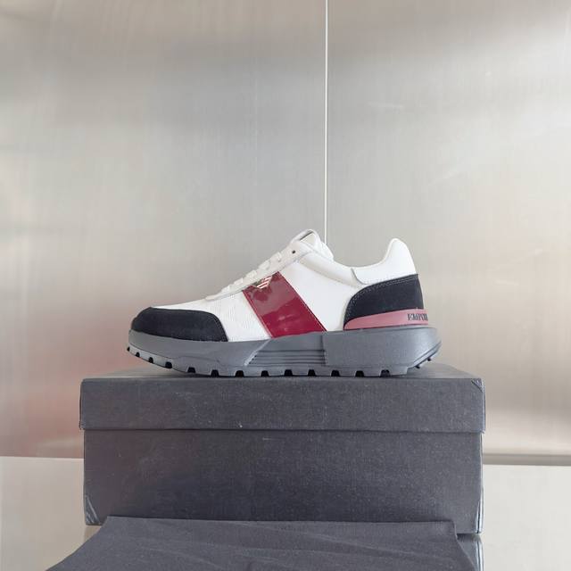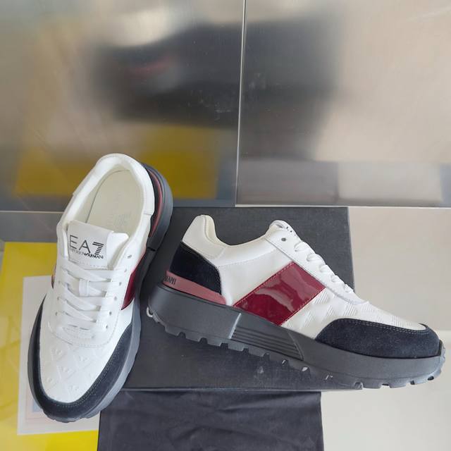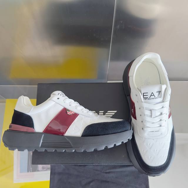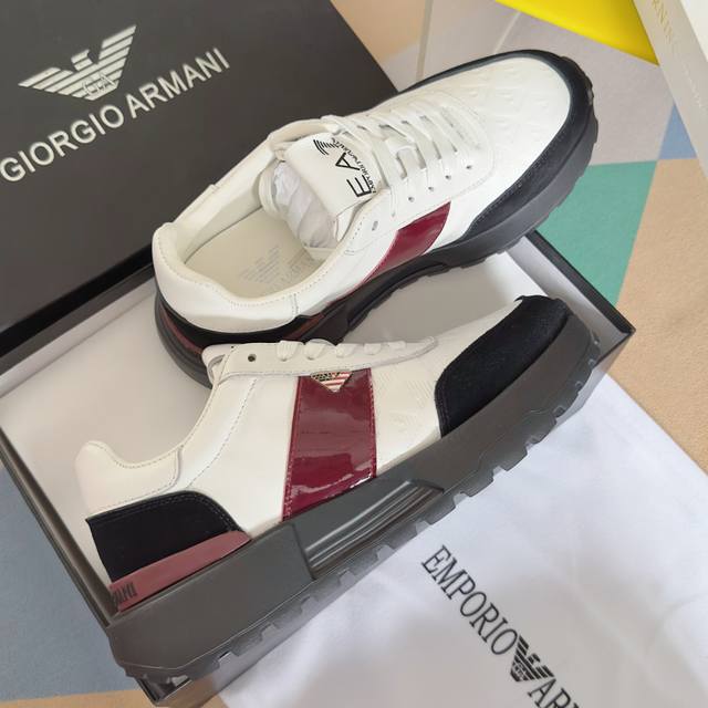 顶级版本:男款 DDD Emporio Armani 阿玛尼 厚底 休闲 运动鞋 DDD 此款 Emporio Armani 运动鞋采用十字纹压花拼接,侧面波状鹰标饰牌点缀,令设计与众不同,展现张扬的现代个性。鞋底甄选Eva材质制成,呈现锯齿纹路,确保穿着的轻盈舒适。便利系带开合,灵感来自于跑鞋,为经典造型增添休闲感 DDD 配送专柜精美包装 DDD 面料 : 原版定制进口头层牛皮 DDD 内里 : 进口柔软羊皮里 DDD 鞋底 : 原版开模橡胶发泡材质 DDD 底厚 :4Cm DDD Size : 男款