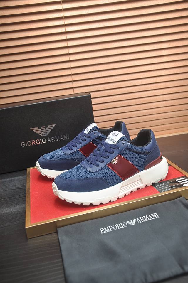 出厂价P Armani 阿玛尼最新新款休闲鞋 火爆热卖官网同款 原单爆款 .原工厂P牛皮材料1:1原板 网布内里,原厂发泡大底。身配件一比一开模 专柜品质 亲们