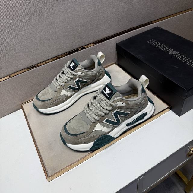 / 出厂价pp 阿玛尼~ 男士休闲鞋 2025Z柜同步发售 码数:38-44# 3个颜色鞋面选用多材质拼接网布内里,舒适透气,鞋底:原版舒适耐磨大底,实物拍摄实物更