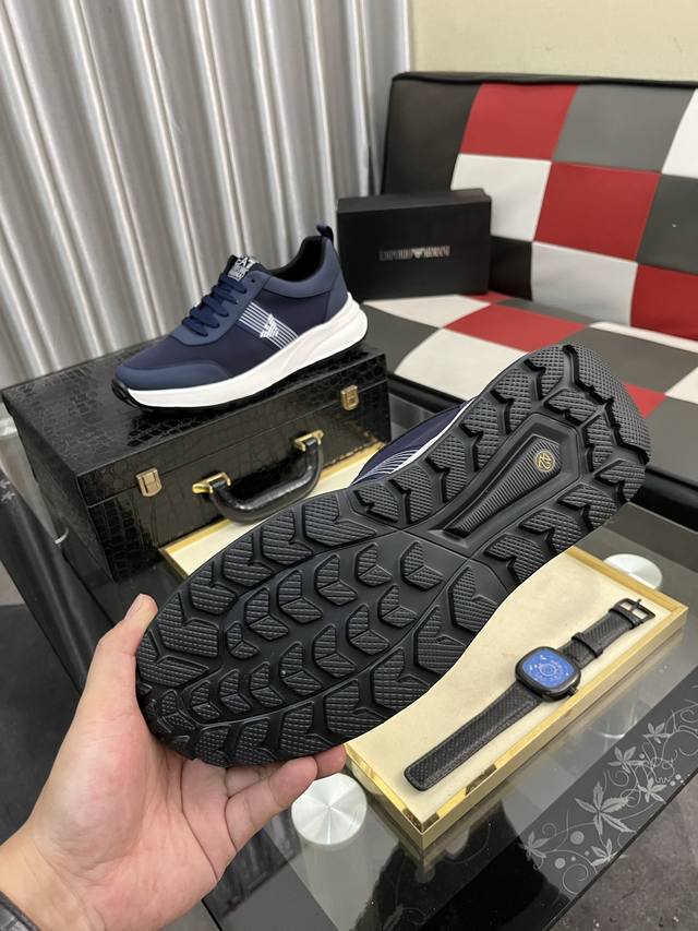 / 出厂价Pp: 阿玛尼Armani* 最新爆款休闲鞋,顶端品牌 奢侈~代购,顶级~质量。 鞋面選用进口透气织布料材质透气羊皮垫脚 精细做工。原版个性时尚柔软橡膠耐