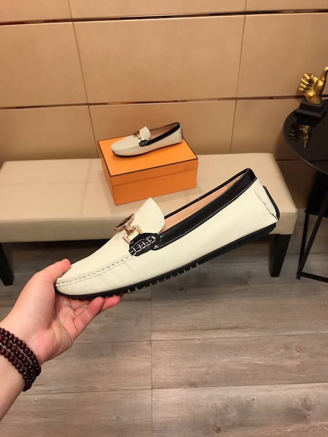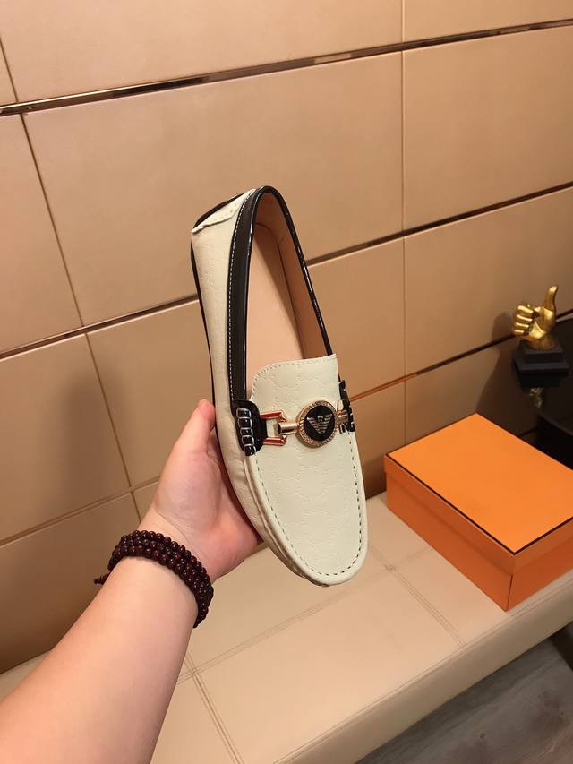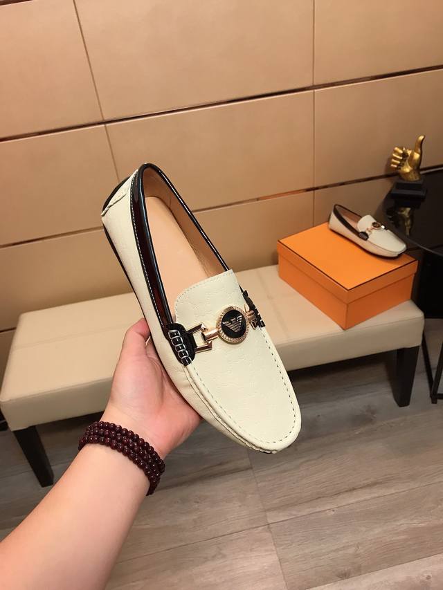 工厂P价 阿玛尼 男士新款韩版豆豆鞋优质做工,鞋面:进口压花皮+品牌饰扣,全真羊皮内里,时尚懒人豆豆设计 休闲乐福款 耐磨大底,绝对高档上档次,适合司机户外驾行 、潮男必备款,码数:38-44