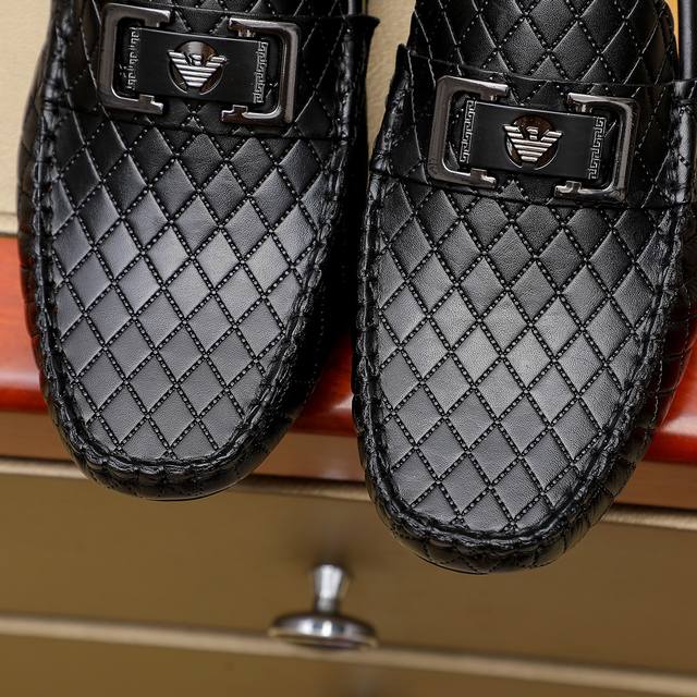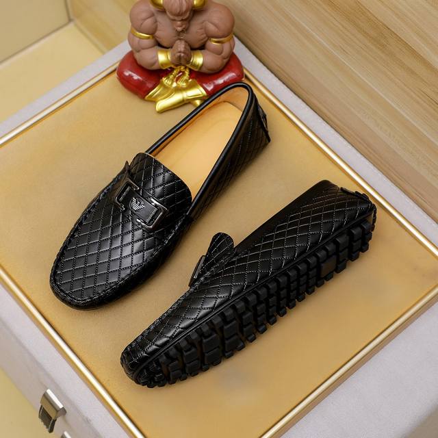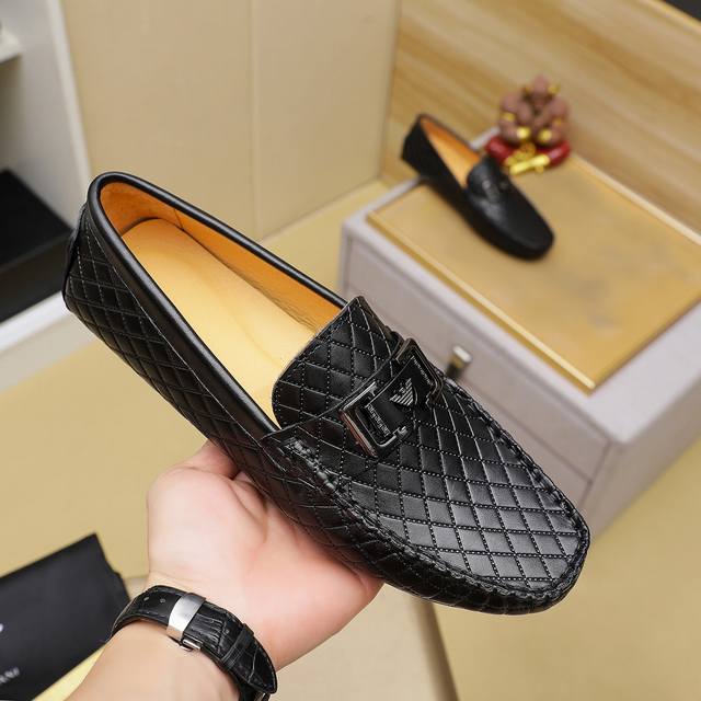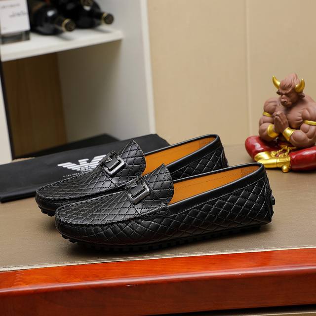 工厂P价 阿玛尼 Armani 新款休闲豆豆鞋、专柜一比一制作 优质做工,原单品质、进口牛皮鞋面皮内里原版橡胶大底、{高品质看得见}欧洲站高端大牌男鞋 码数:黑色、配码数38-45