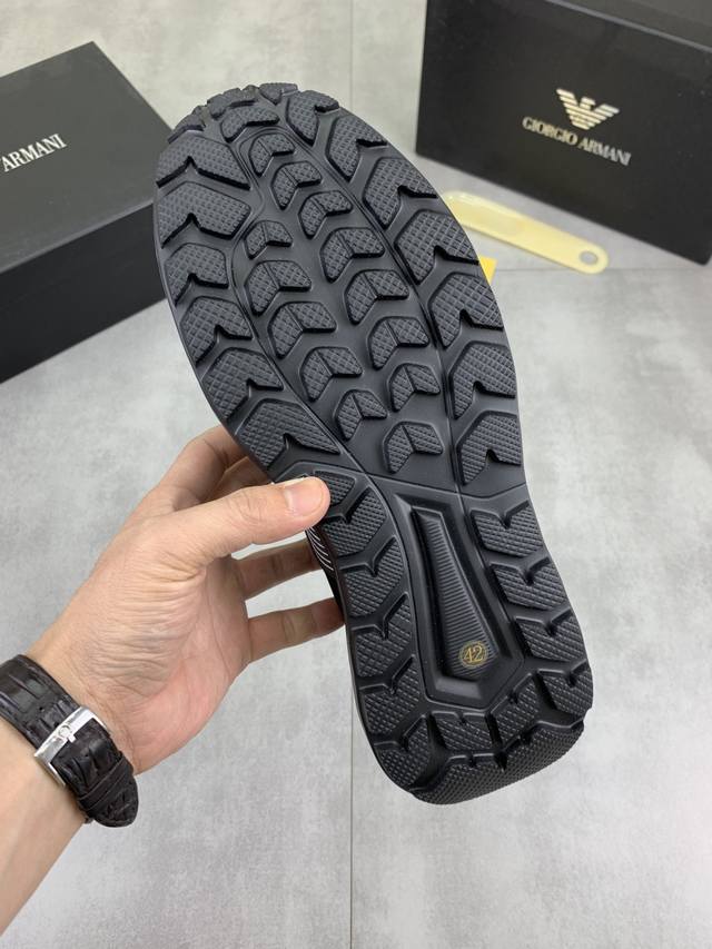 工厂p价p 实价 Giorgio Armani阿玛尼新款休闲运动男鞋到货,Kint-And-Leather Snakers新秀首发 DDD 这款提供原创设计,并与创新面料相结合,进口牛皮压纹立体感十足!打造富有现代气息的高科技造型,是都市生活的理想鞋履,呈现一丝动感气息,营造洋溢年轻活力!透气水洗羊里,防滑耐磨高弹发泡超轻大底经久耐穿,确保支撑力与稳定性,穿着舒适不凡。具备出众的摩擦力、减震效果和适度支撑,舒适不凡,性能优异,值得拥有!码数:38-45 颜色:3色可选 DDD