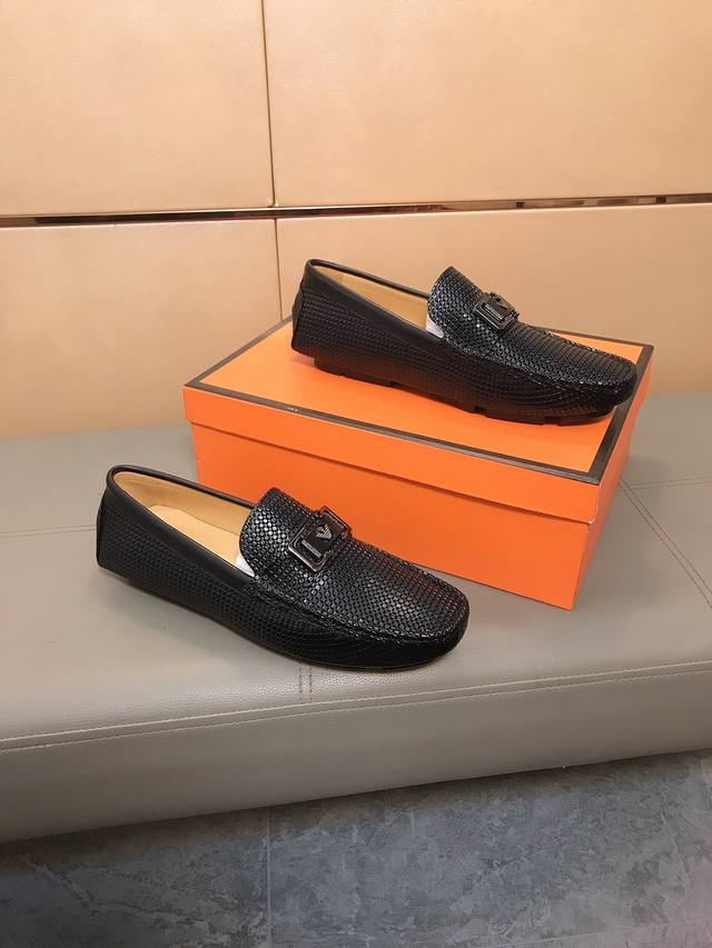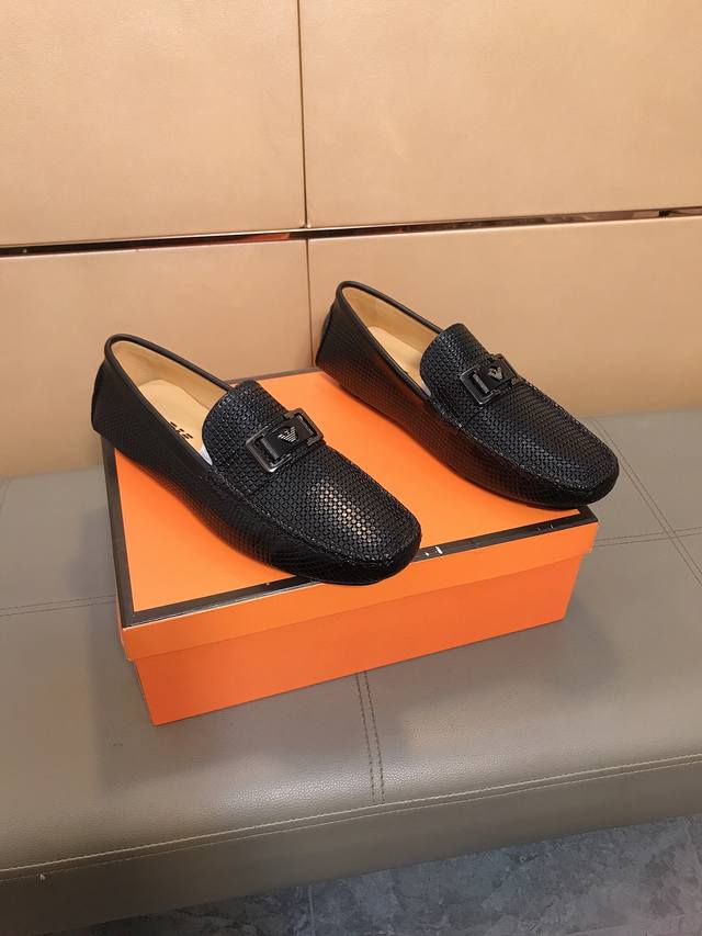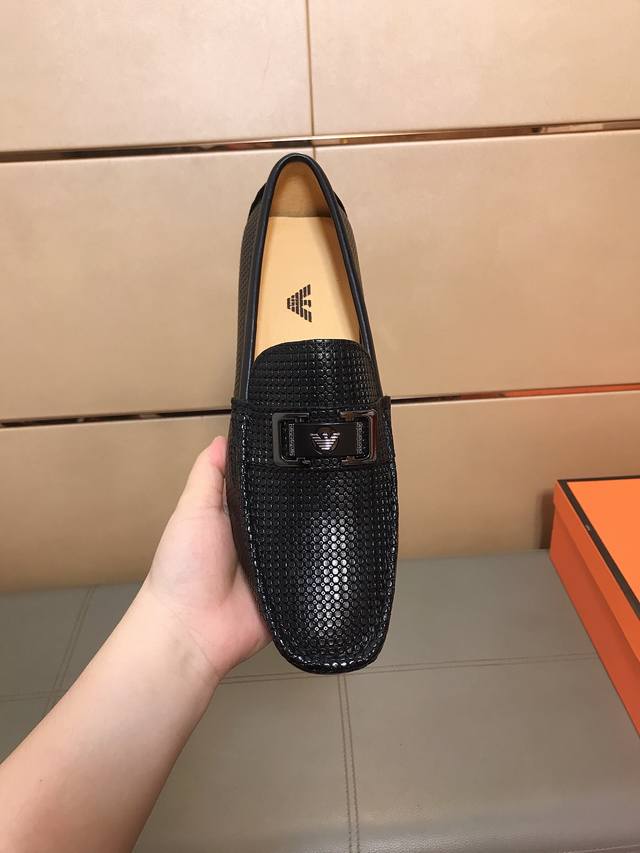 工厂P价P 阿玛尼 最新款休闲时尚豆豆鞋鞋,爆款版型简洁大气,潮男专属.独有的最新品牌元素,时尚又大方,鞋面压花牛皮+羊皮内里,指定耐磨、轻便原版休闲大底,经典款实物拍摄码数38-44