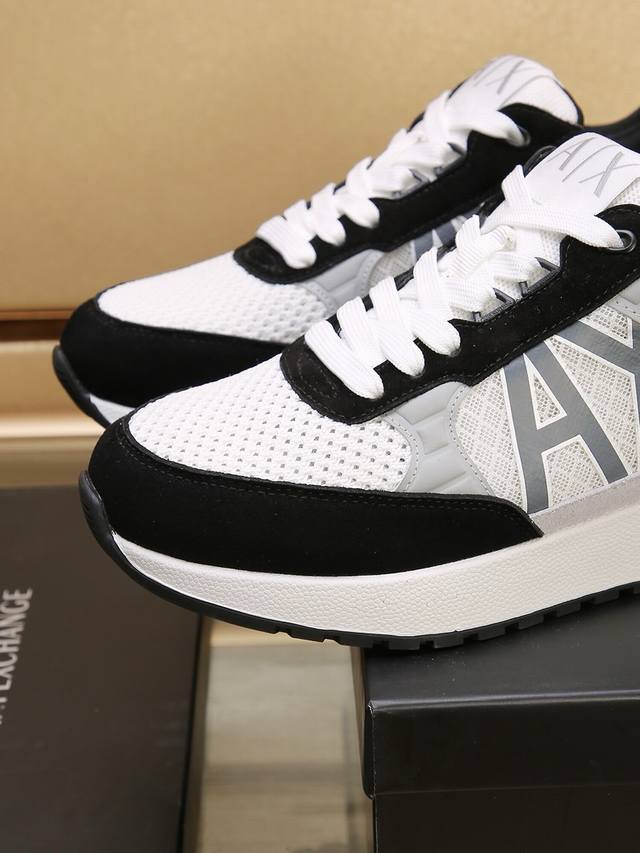 2025新款,阿玛尼A X休闲运动男士鞋,鞋面采用压花工艺,此底非常柔软,舒适轻松,码数38-46,价格 到