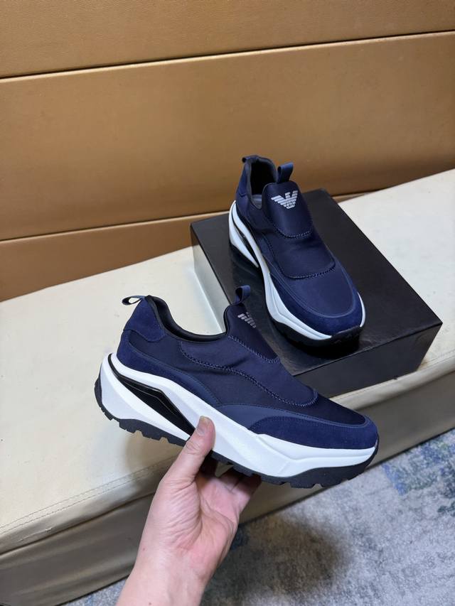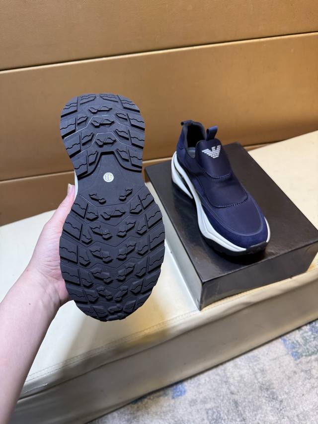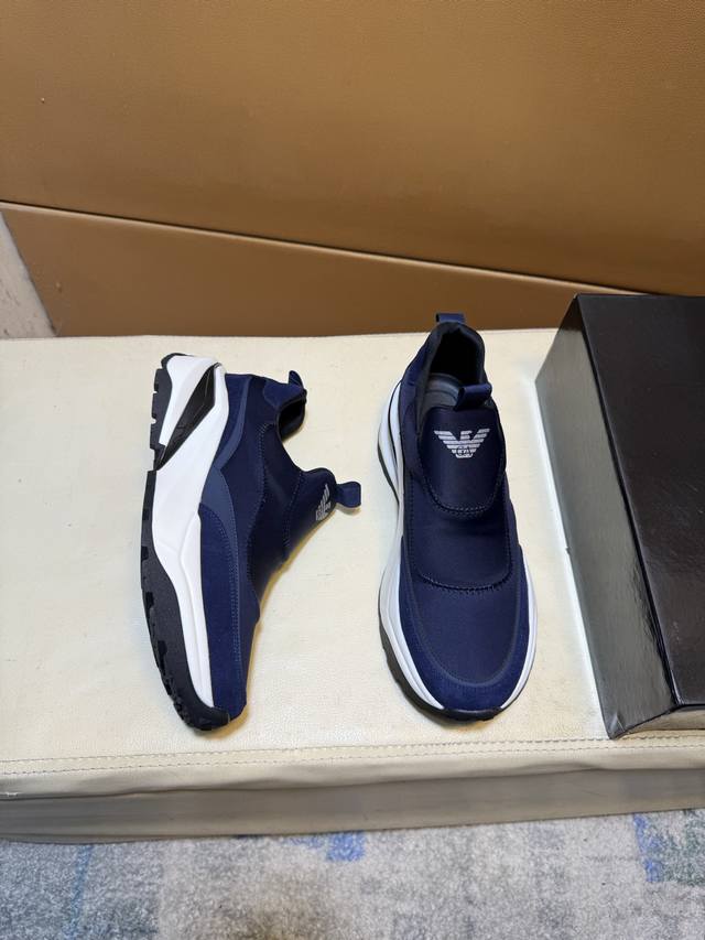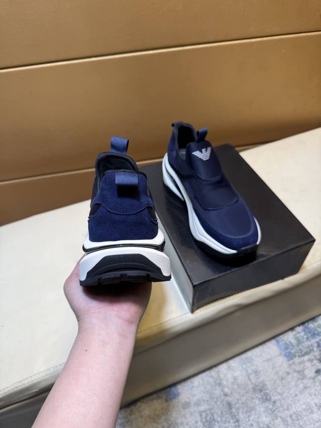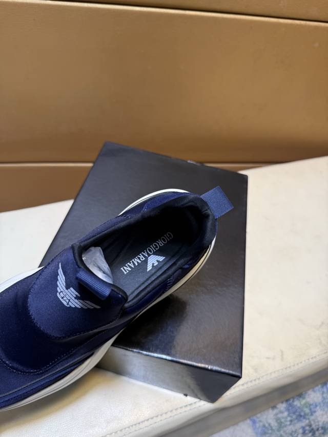 阿玛尼Armani* 最新爆款休闲鞋,顶端品牌 奢侈~代购,顶级~质量。 鞋面選用进口透气牛皮织布配材质透气羊皮垫脚...