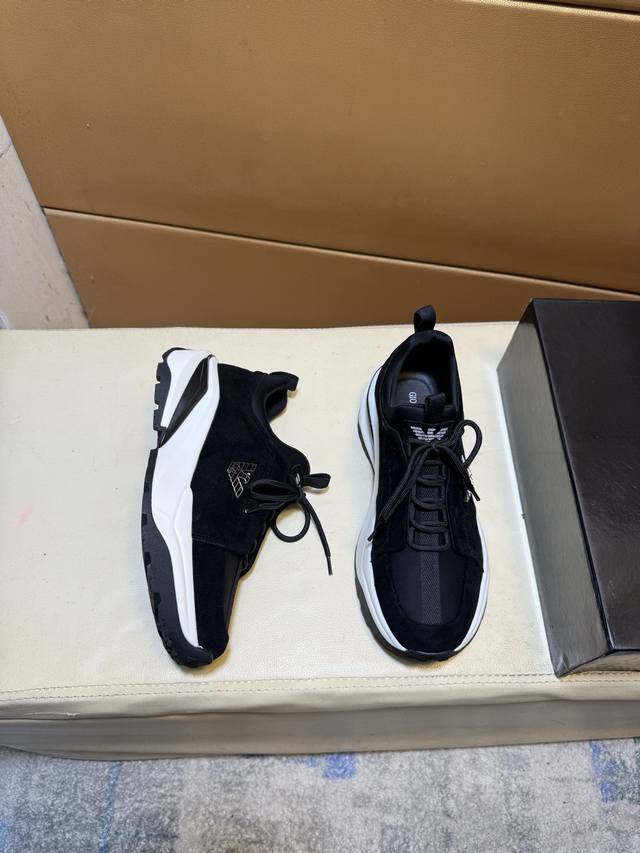 最新阿玛尼男士休闲运动鞋,头层牛皮接拼,纯棉透气网里不闷脚 上脚柔软舒适 Tpu大底脚感轻便! Size:38-44 45 46定做