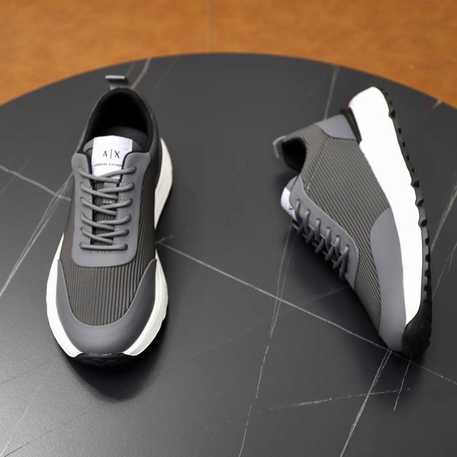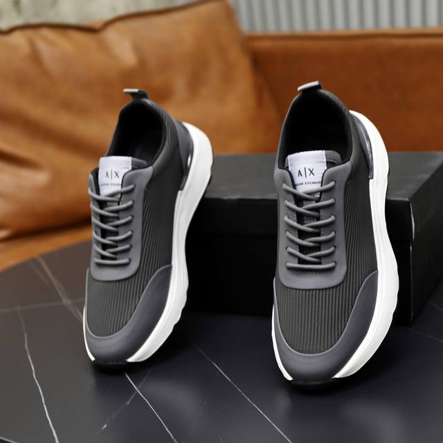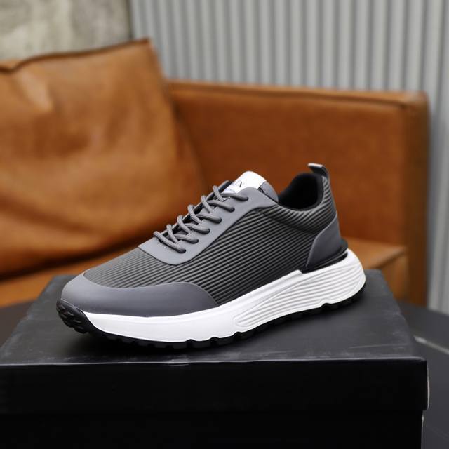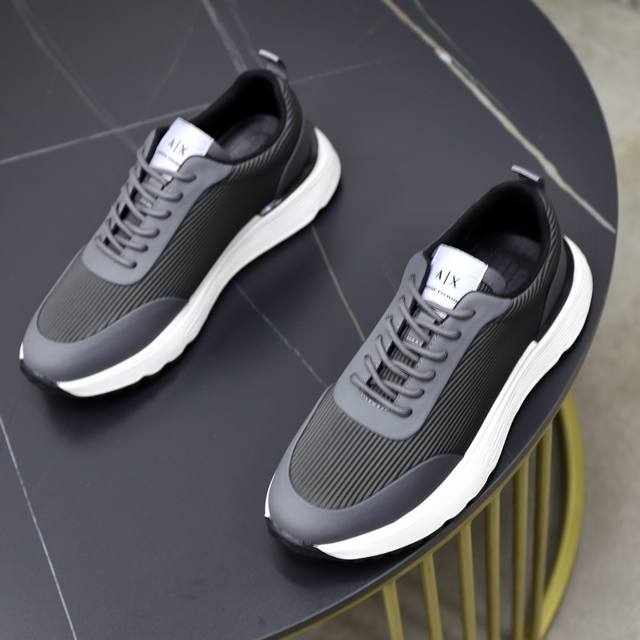 调工厂P价 男装男鞋 运动原单 品牌:阿玛尼 标准码:38-44 45订做 等级:官网同款 材料:原版高档网布拼接面 舒适透气内里 轻便柔软耐磨大底 款式类别: