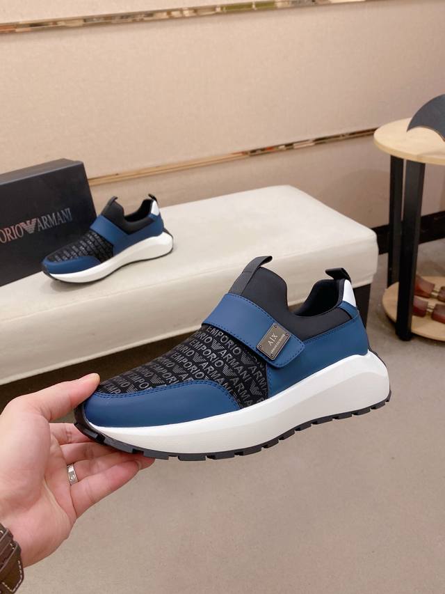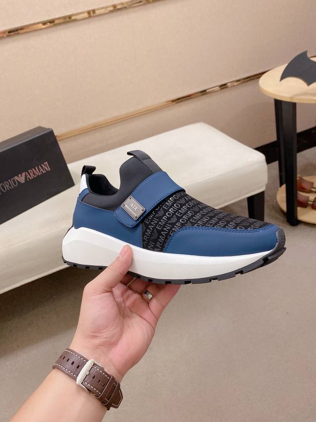 调工厂P价 男装男鞋 运动原单 阿玛尼 Armani Exchange 最新春夏款休闲男鞋,欢迎1:1对比,爆单款香港专柜休闲鞋,专柜品质,支持验货,优质做工,鞋面采用意大利进口牛皮面料,透气网布内里,羊皮鞋垫,原版时尚运动大底 ,休闲时尚,高端品质,码数:38-44 可定做45不退换