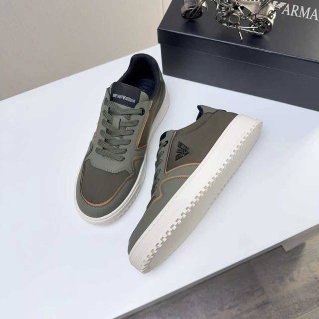 工厂P价P 实价 Giorgio Armani阿玛尼新款休闲运动男鞋到货,Kint-And-Leather Snakers新秀首发 这款提供原创设计,并与创新面