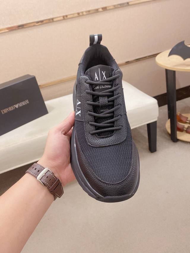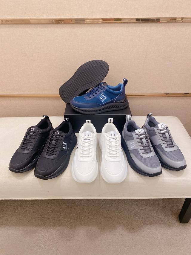 商品名称:Armani 阿玛尼 正规码数: 38-44 休闲鞋 商品材料:精选 滴胶网布鞋面,柔软羊皮垫脚;原厂特供大底。
