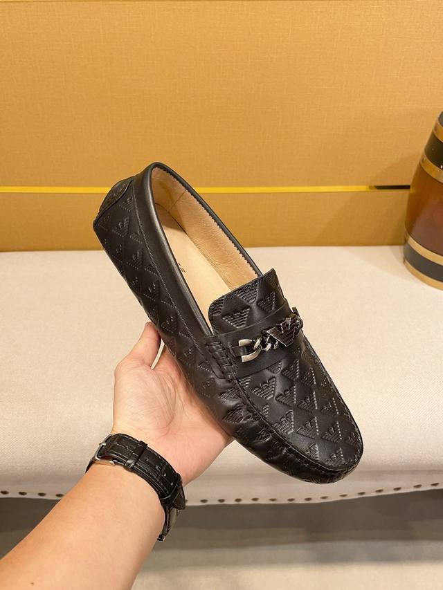 Armani 阿玛尼 世界著名奢侈品牌,豆豆系列男鞋,以经典的设计成为永不落幕的时尚宠儿,经典的休闲造型。采用进口牛皮压花+大面积品牌设计风格独特更呈现出大气上档次+专用大底,耐磨,轻便,整体设计和谐统一又不缺乏个性 你值得拥有! 38~44。A37