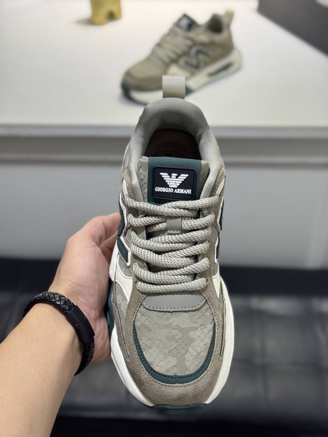 工厂P价P 实价 Giorgio Armani阿玛尼新款休闲运动男鞋到货,Kint-And-Leather Snakers新秀首发 这款提供原创设计,并与创新面