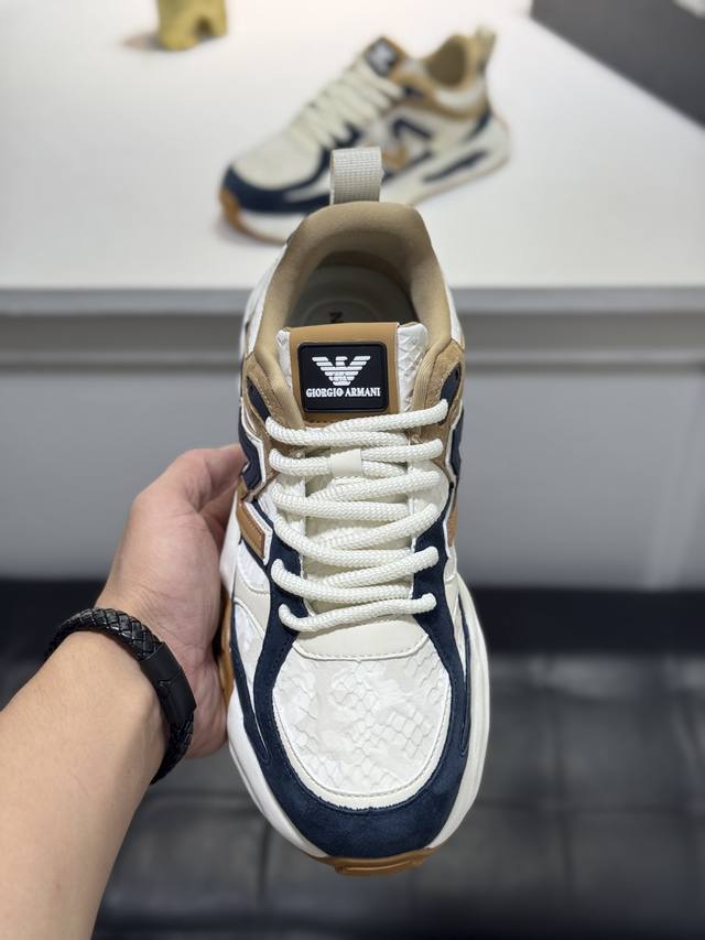 工厂P价P 实价 Giorgio Armani阿玛尼新款休闲运动男鞋到货,Kint-And-Leather Snakers新秀首发 这款提供原创设计,并与创新面