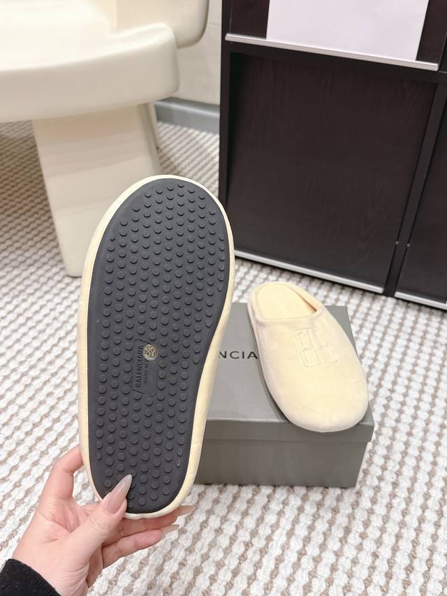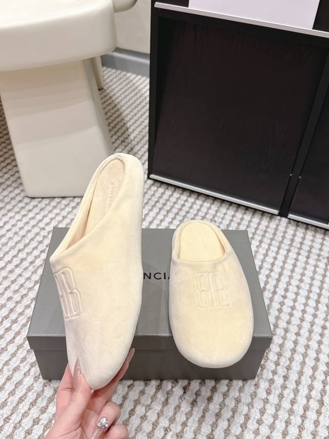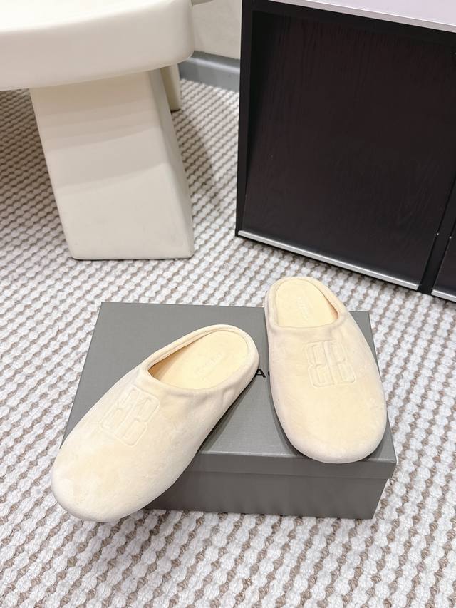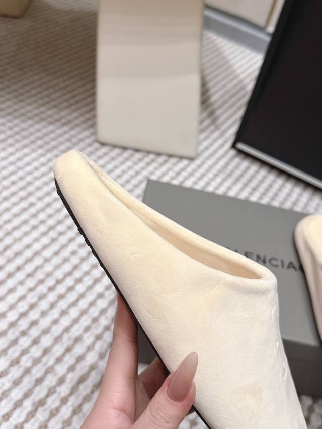 FFF 代购级 皮面 DDD Balenciaga巴黎世家 Chateau Flat Mule 包头拖鞋 DDD 巴黎世家Fall26系列Chateau Flat Mule拖鞋,黑色小牛皮+丝绒材质,简约大气,鞋面Bb标志超有辨识度。平底设计,日常穿超舒适,户外也能轻松驾驭! DDD 鞋垫和鞋面同材质,质感满分,耐用性也很棒经典百搭,休闲或简约风都能轻松Hold住,是实用又时髦的时尚单品! DDD Size :35-45 女40.男38.45订做不退换 DDD
