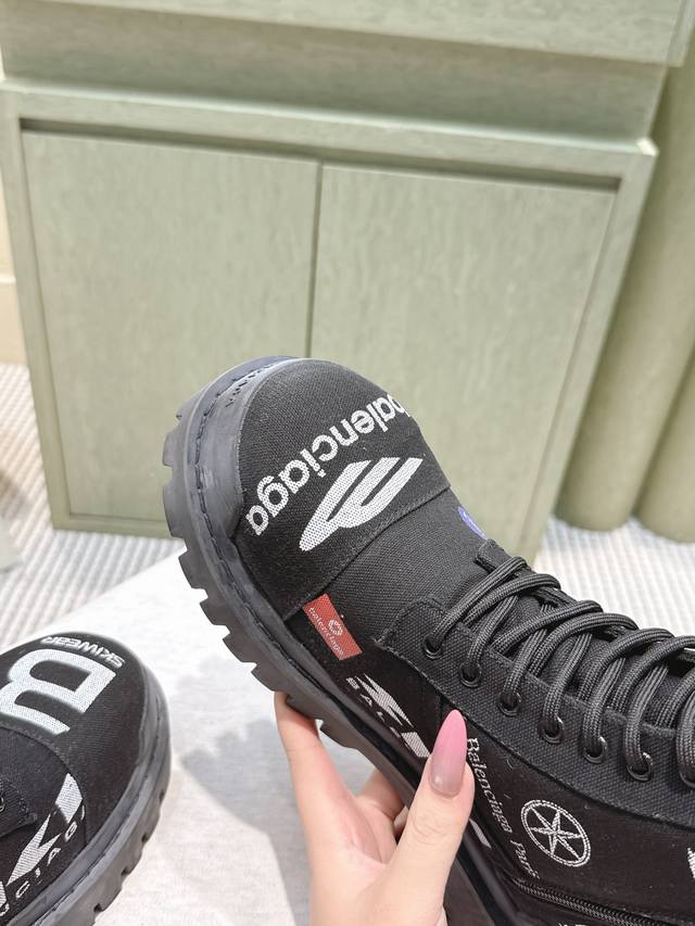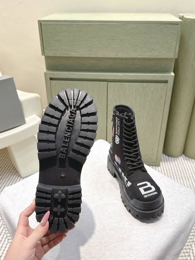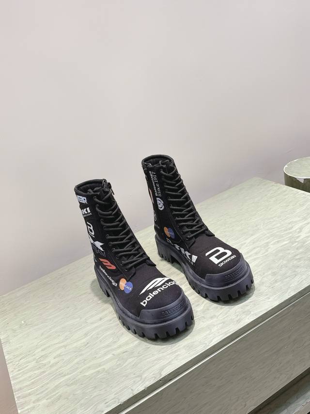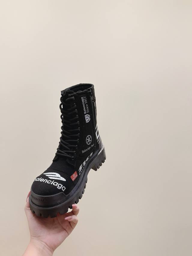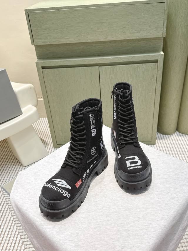 代购级 Balenciaga巴黎世家25Ss Stomper短靴,购入原版开发,大底开模,仿古做旧工艺效果工装系带靴,圆头裸靴侧拉链厚男士底靴,锯齿性原版发泡大底,面料原版织布,垫脚牛皮,里布牛皮,全套包装码数Size : 39-46