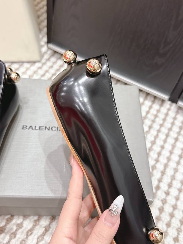 / 代购级 Balenciaga金属装饰 漆皮 平底鞋 单鞋 巴黎世家2026早春新款,方头设计+金属球装饰,时髦又有辨识度!漆皮材质光泽感满分,黑色、白色、裸色可